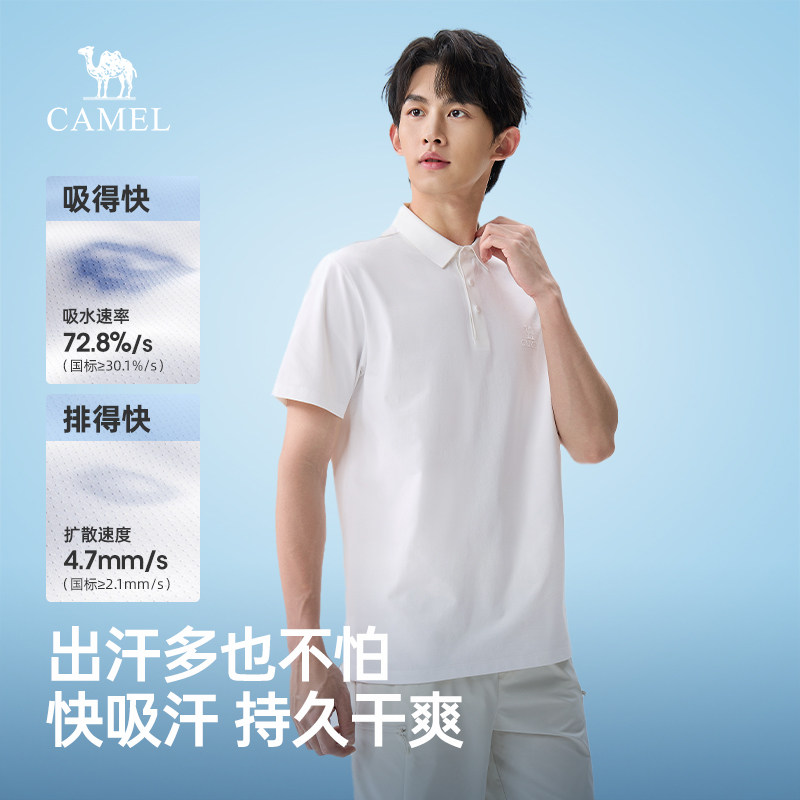 骆驼男装polo衫夏季男2026短袖吸湿速干衣透气翻领纯色t恤女