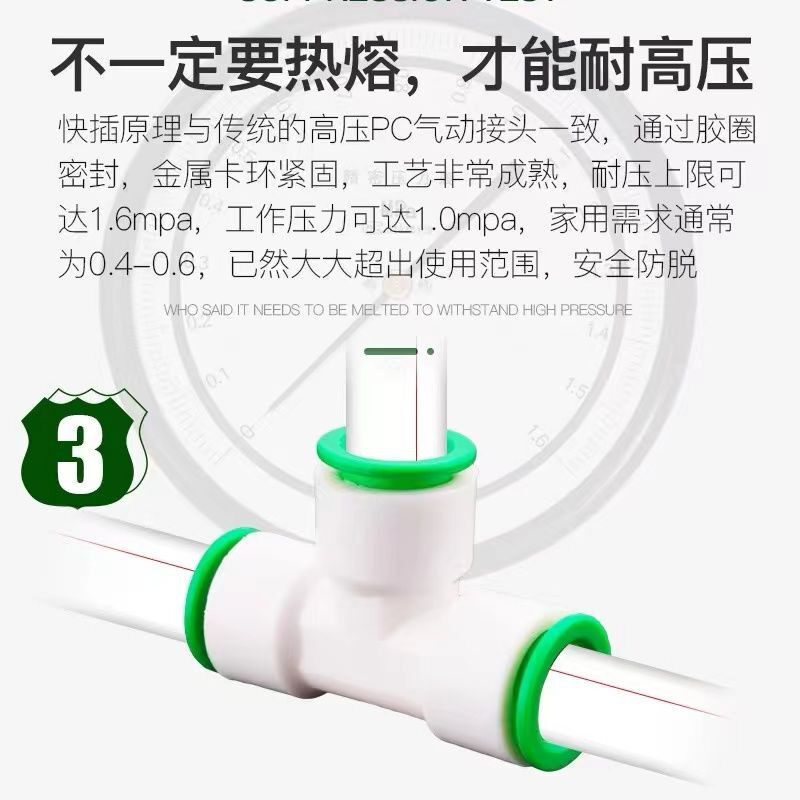 免热熔快速接头PPR水管配件冷热水直插式三通阀门