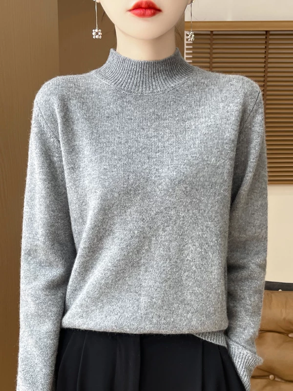 品牌高级感羊毛衫女半高领宽松毛衣秋冬加厚羊绒长袖针织打底衫新