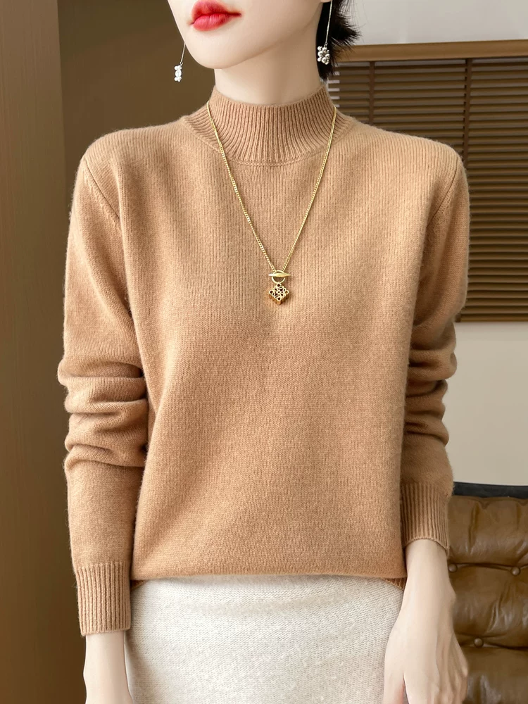 一线成衣无缝女半高领套头打底衫秋冬内搭毛衣修身长袖羊毛针织衫