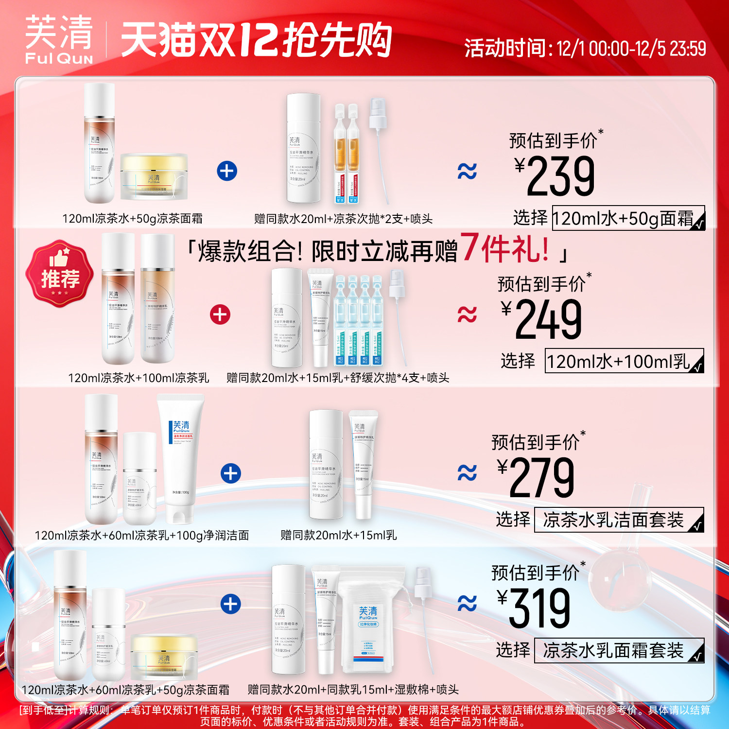 芙清凉茶水乳套装敏感肌控油油痘肌祛痘闭口舒缓补水保湿夏旗舰店