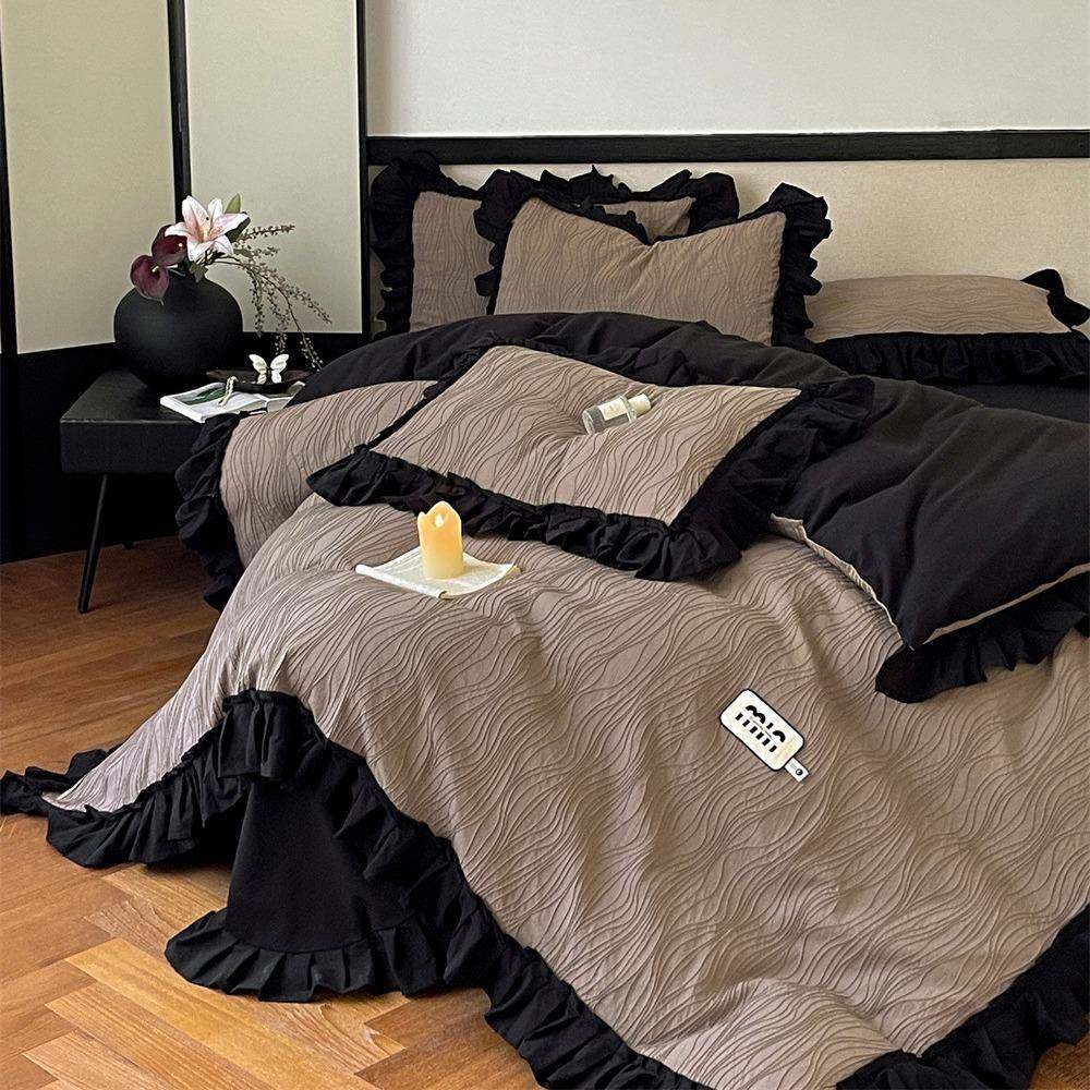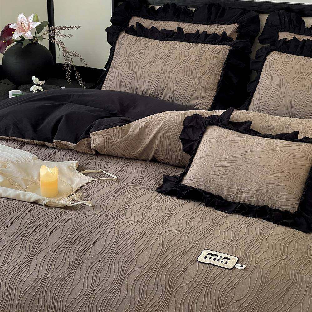 法式全棉水洗棉四件套浪漫荷叶花边被套床单柔软纯棉1.8m床上用品