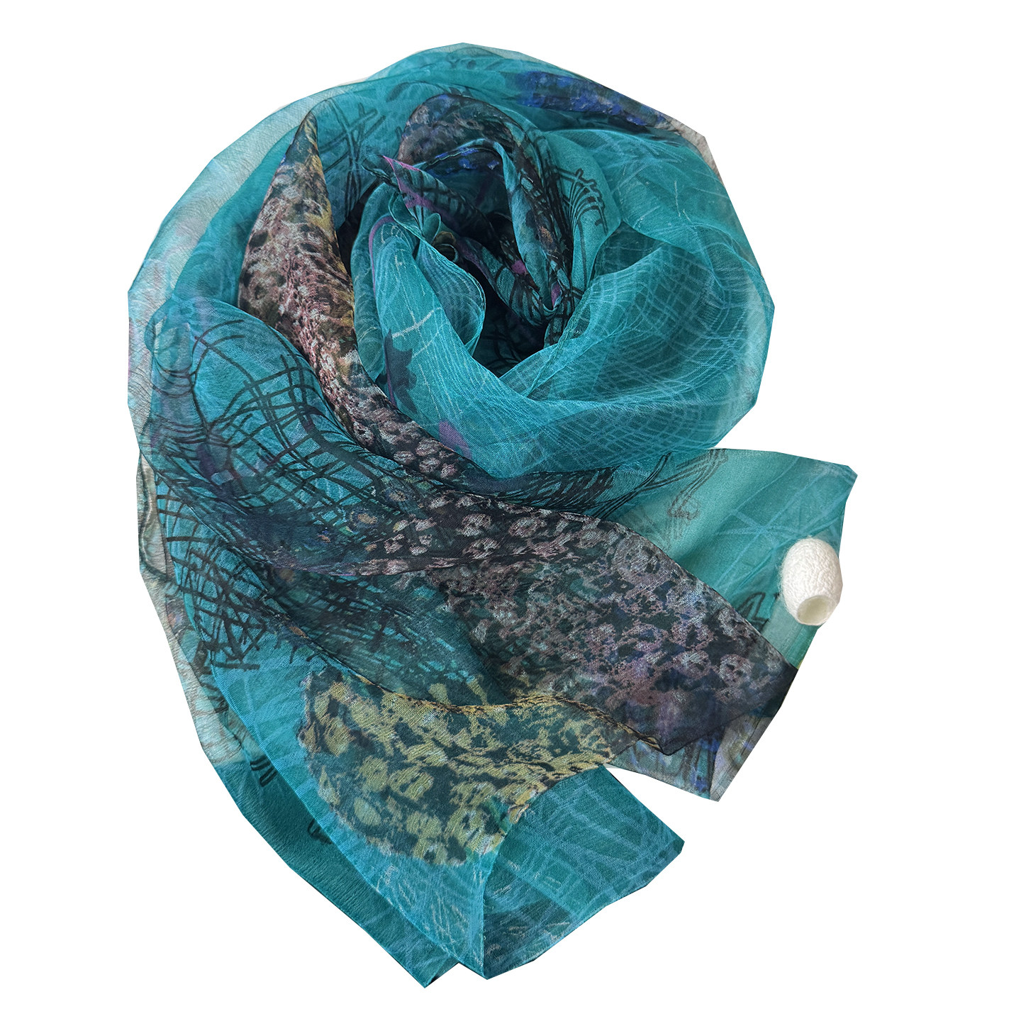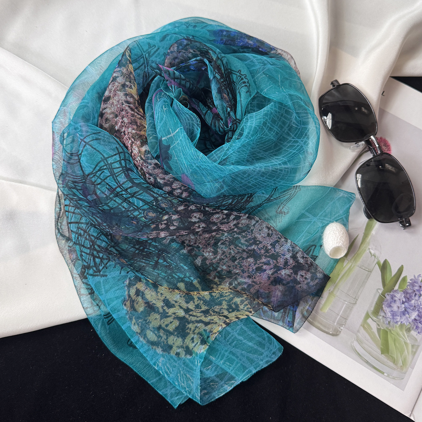 孔雀蓝真丝桑蚕丝丝巾动功能轻薄款百搭护颈围巾纱巾妈妈长款披肩