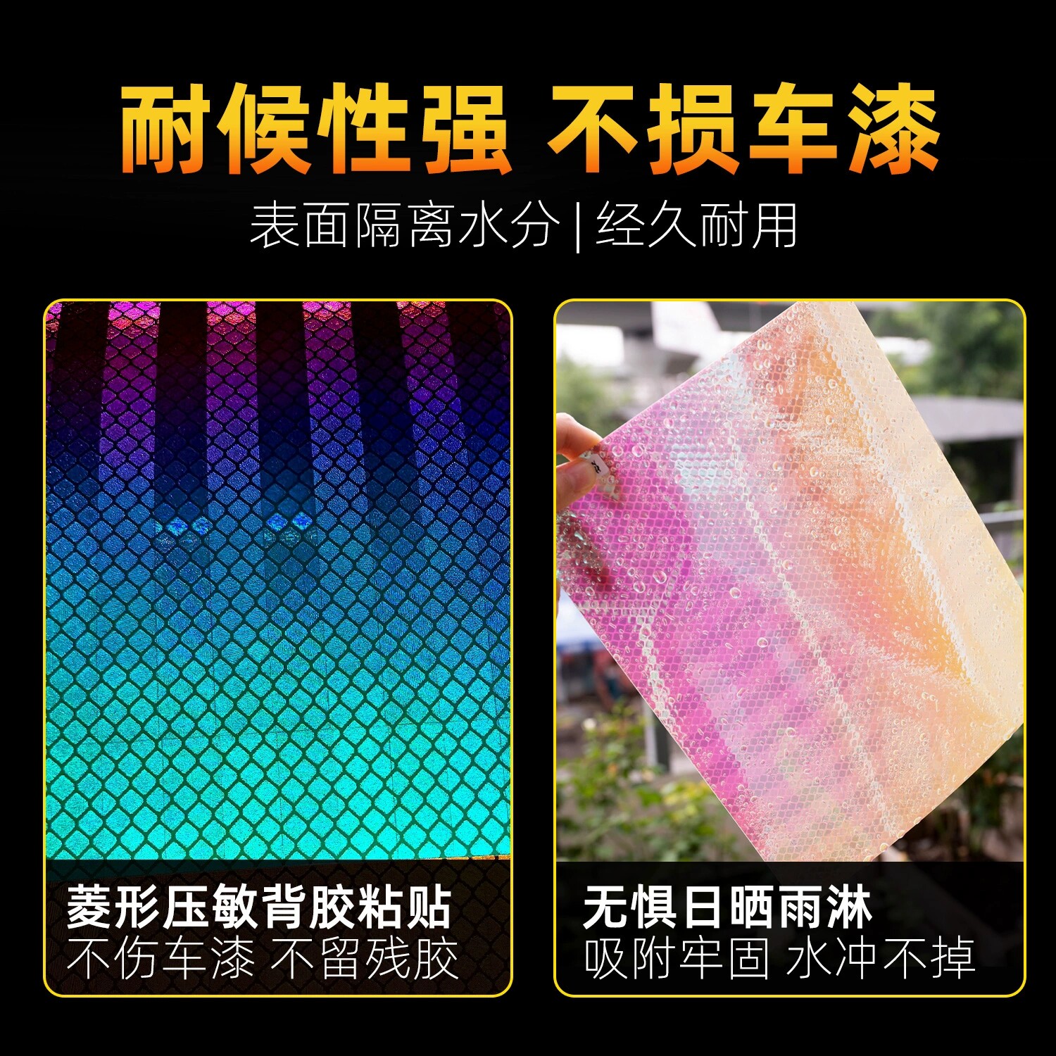 七彩镭射车身车门后档玻璃轮眉后翼车标遮挡划痕拉花装饰汽车贴纸