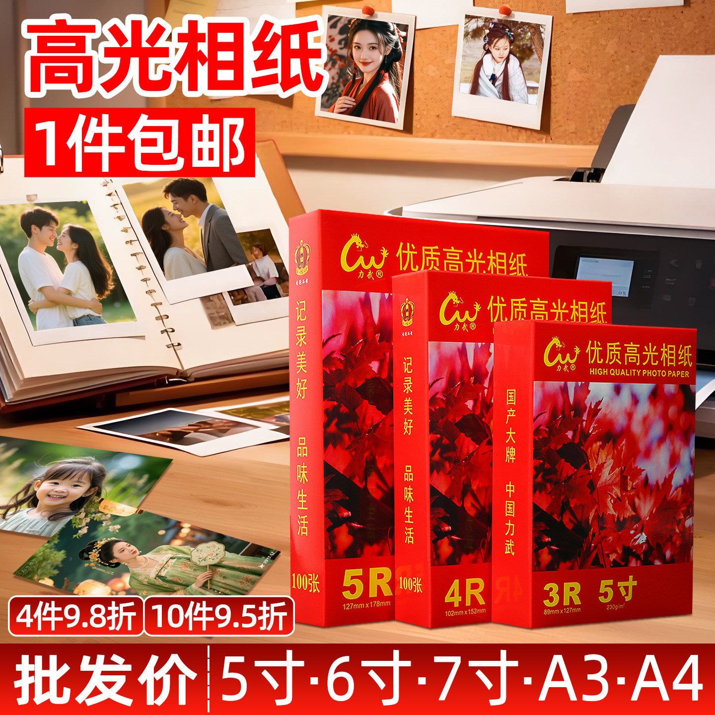 相纸6寸照片打印纸180克230g家用相册纸像纸彩色喷墨打印机专用A4六寸4R5寸3寸适用惠普佳能爱普生高光相片纸