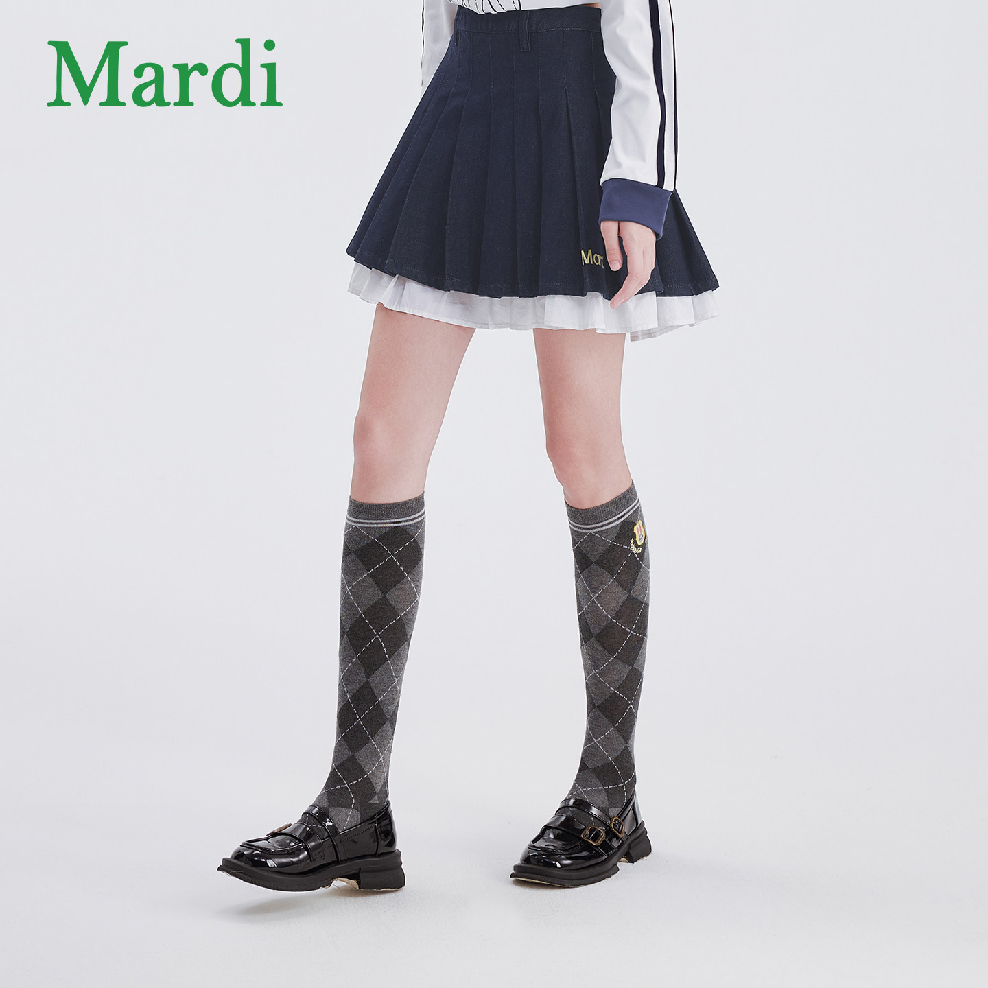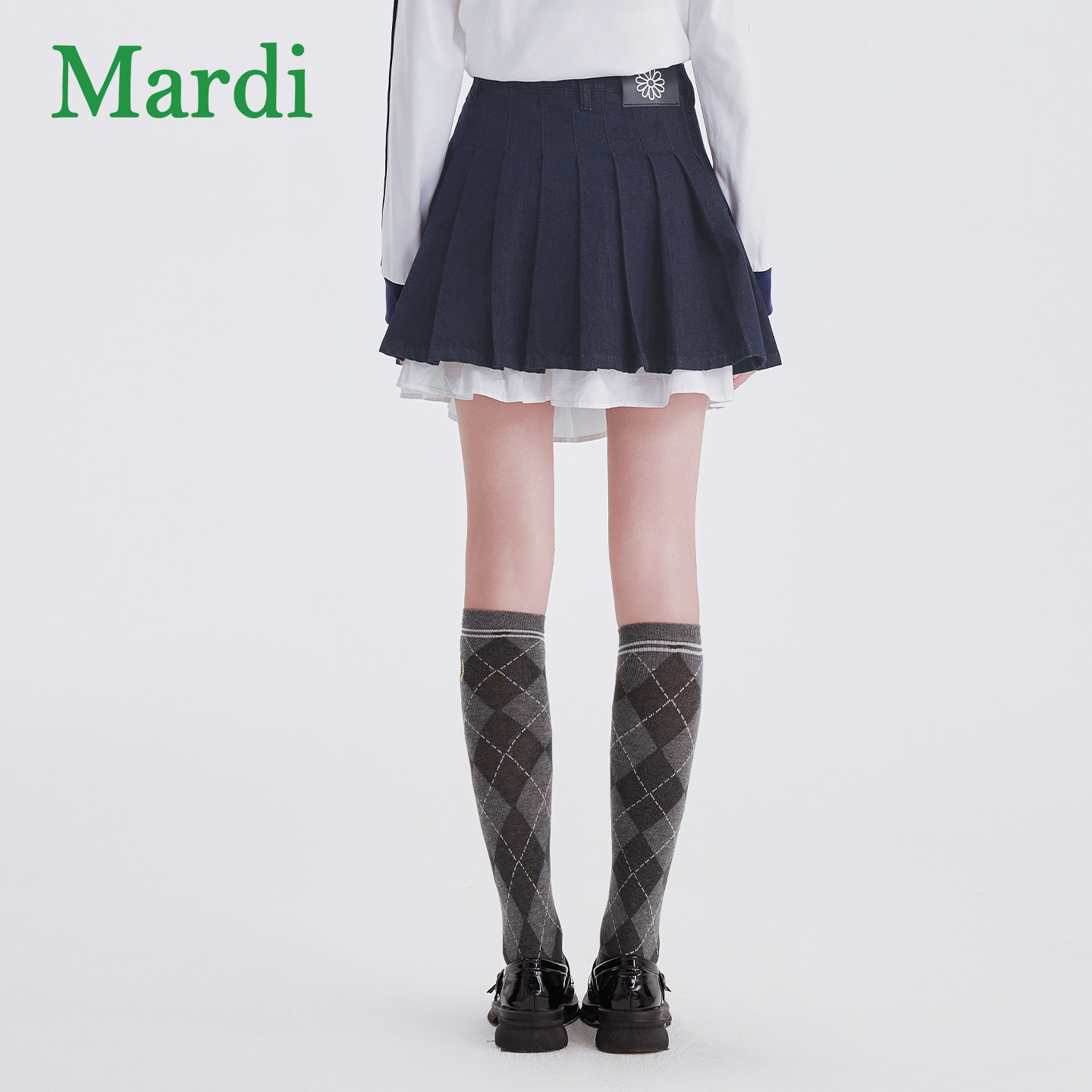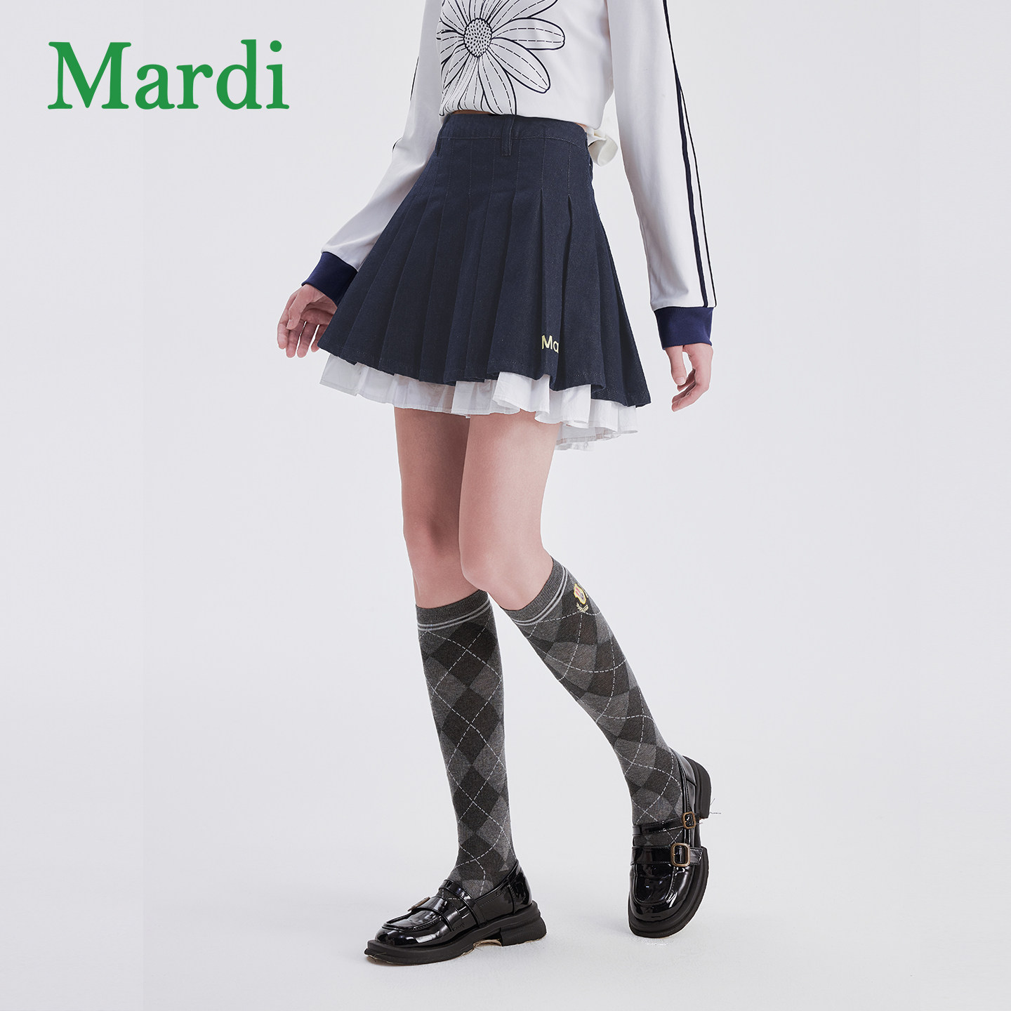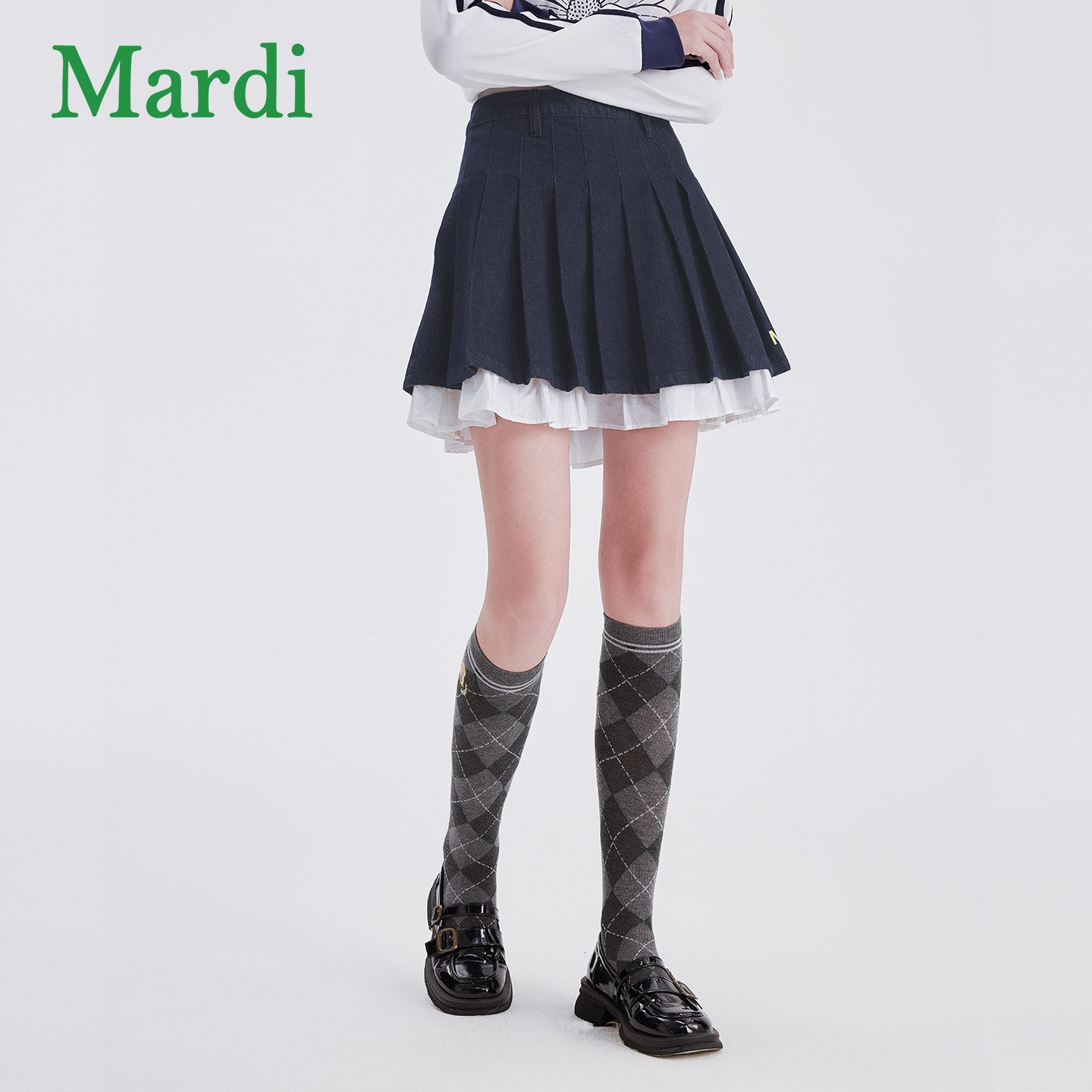 MARDI女款百褶半身裙春季新款拼接休闲百搭显瘦时尚高腰修身裙子