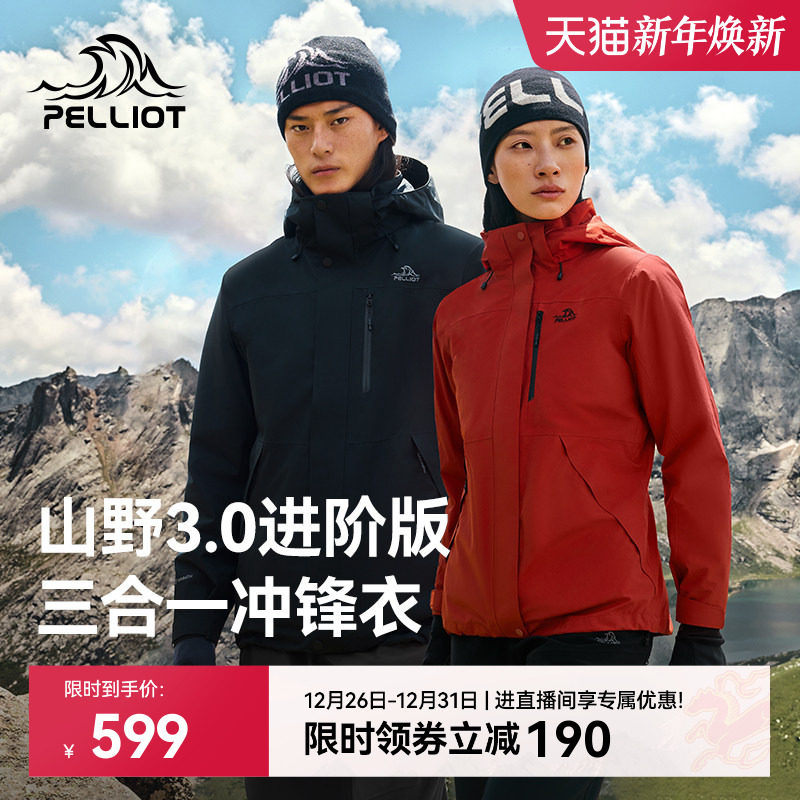 【经典2.0】伯希和户外加绒冲锋衣男冬季三合一防风登山服外套女