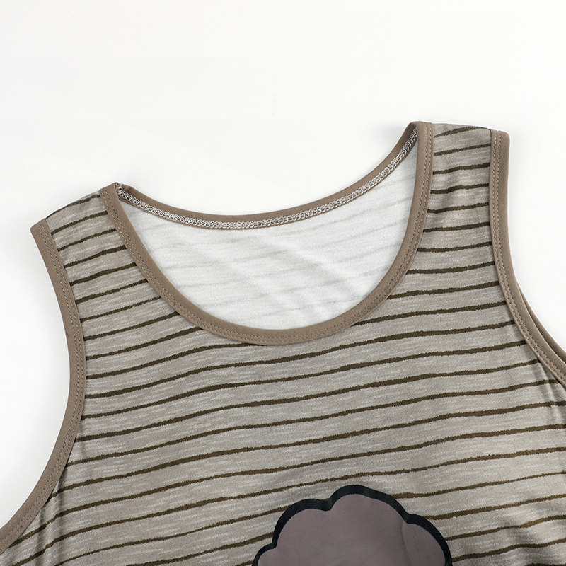 末里末【带胸垫】2026夏季无袖背心睡裙圆领条纹卡通连衣裙睡衣