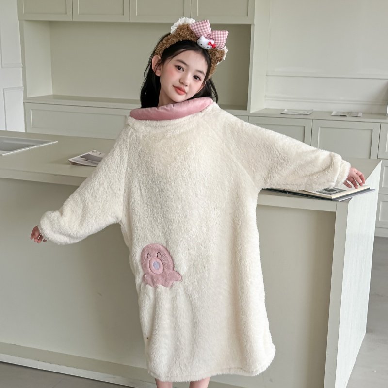 a类儿童吸水浴袍长款加厚中大童家居服珊瑚绒卡通可爱睡袍秋冬季
