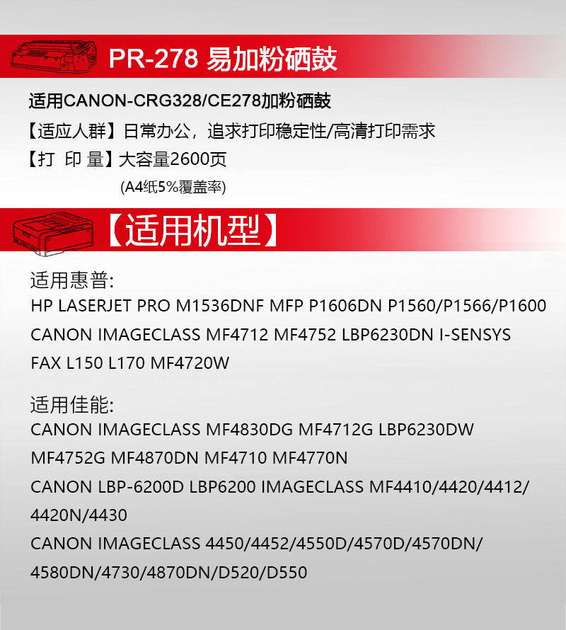 天威适用惠普CE278A硒鼓78A hp1536dnf 1606 佳能328 mf4712墨盒