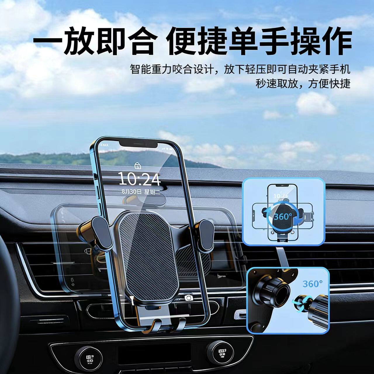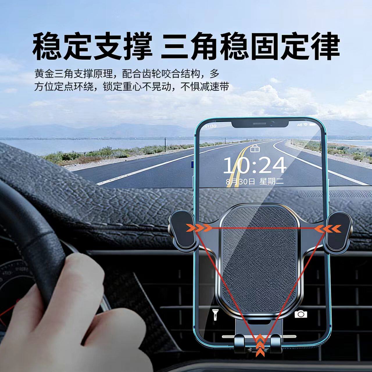 2025新款吸盘式车载手机架卡扣重力支撑自动卡紧汽车导航专用支架