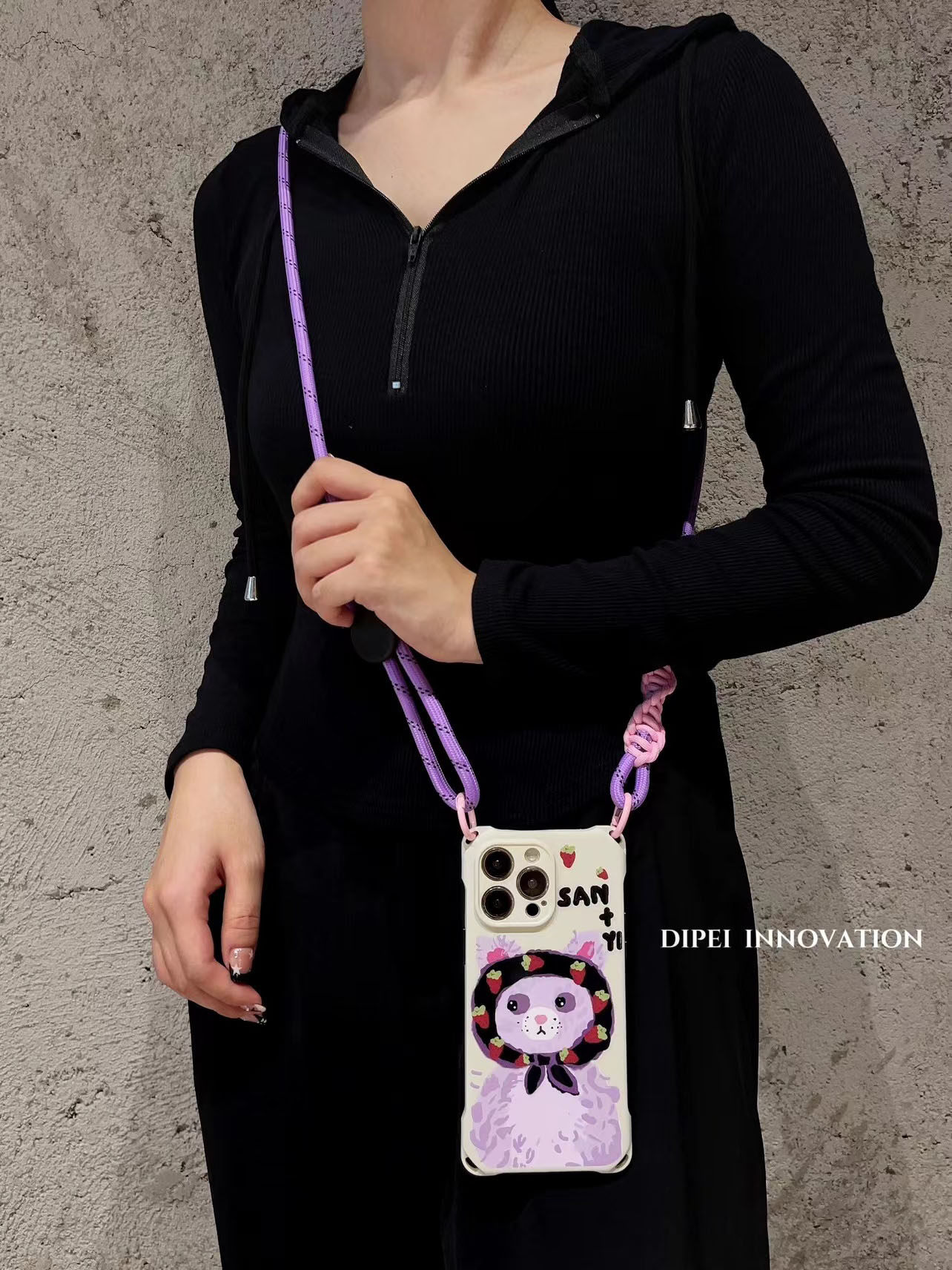 可爱油画头巾猫咪挂绳手机壳14Promax斜挎可调节适用荣耀苹果iPhone13四孔15plus防摔magic5手提p60/mate50软