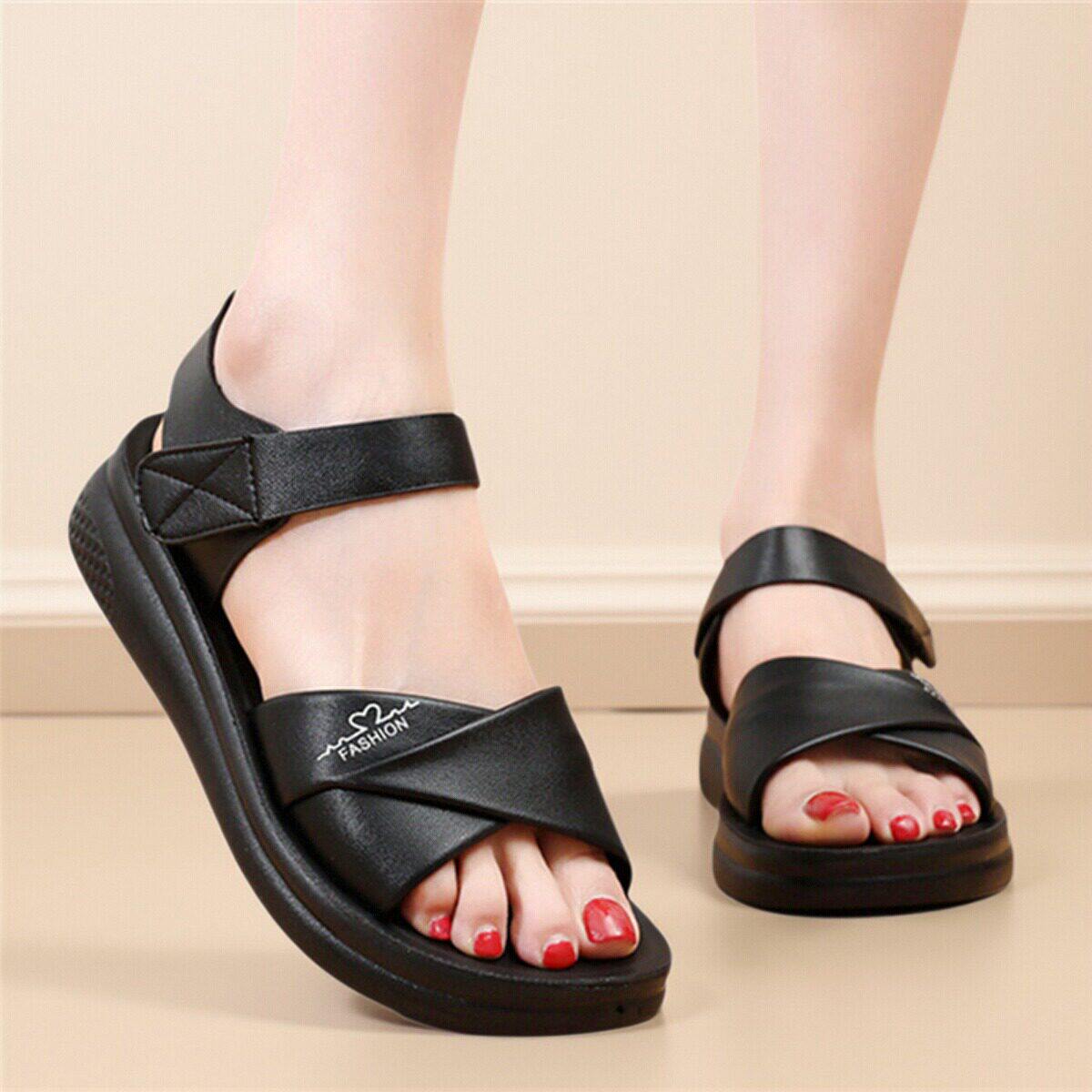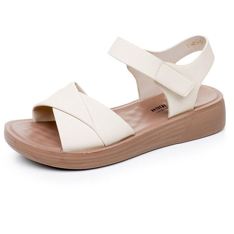 意尔康心选2026休闲软底平底凉鞋中年女士防滑皮面舒适妈妈脚宽