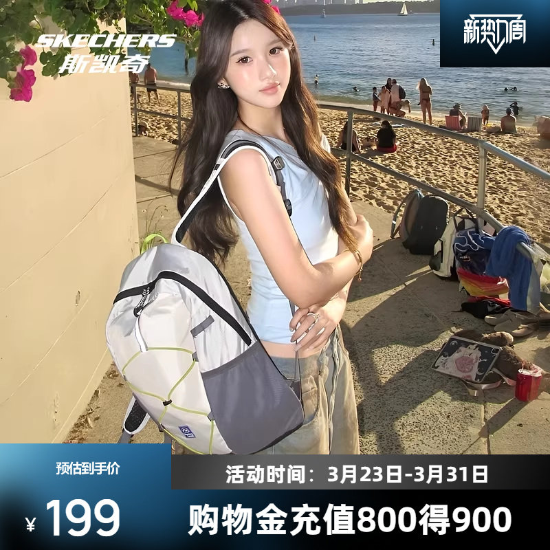 斯凯奇双肩包大容量简约旅行背包开学季百搭大学生运动休闲书包