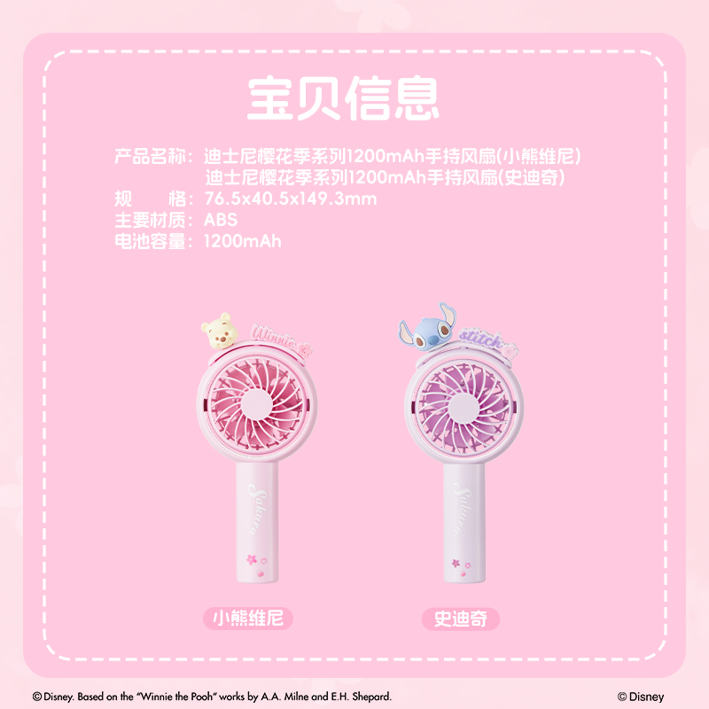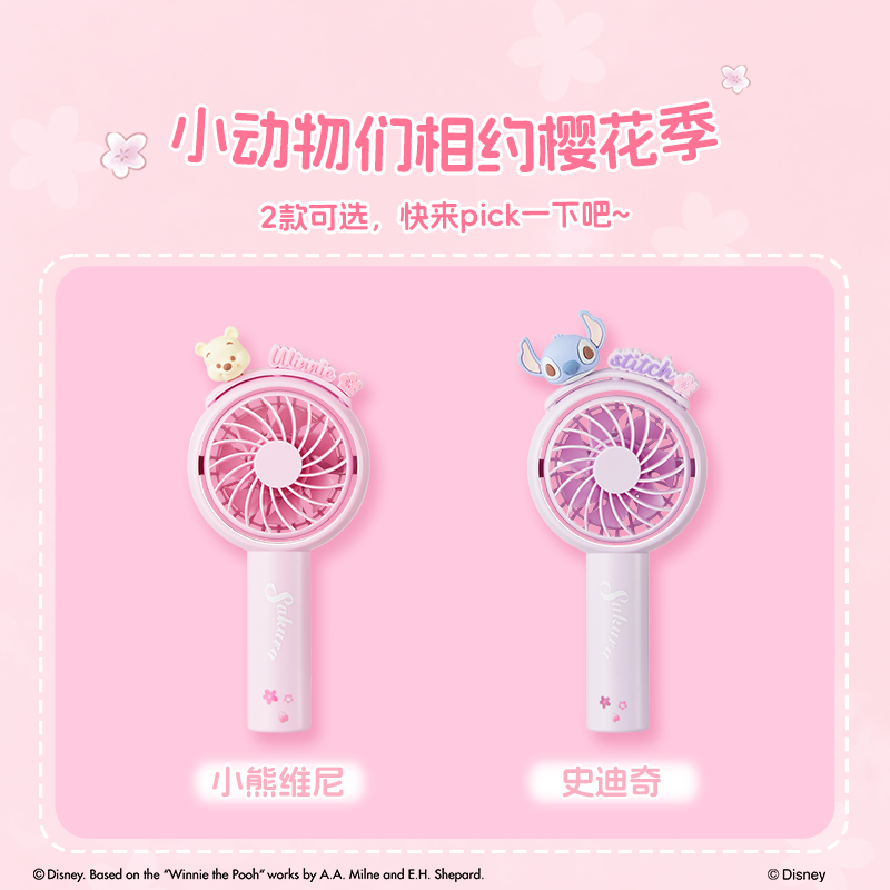 MINISO名创优品迪士尼樱花季风扇超强力迷你usb小风扇静音办公室桌上便携式随身静音小风扇超长续航学生宿舍