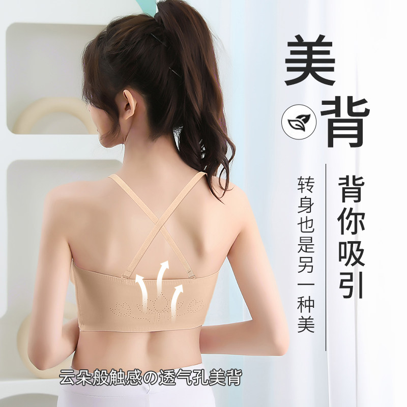 无痕美背抹胸内衣女小胸聚拢可外漏细肩带一体固定杯背心式文胸罩