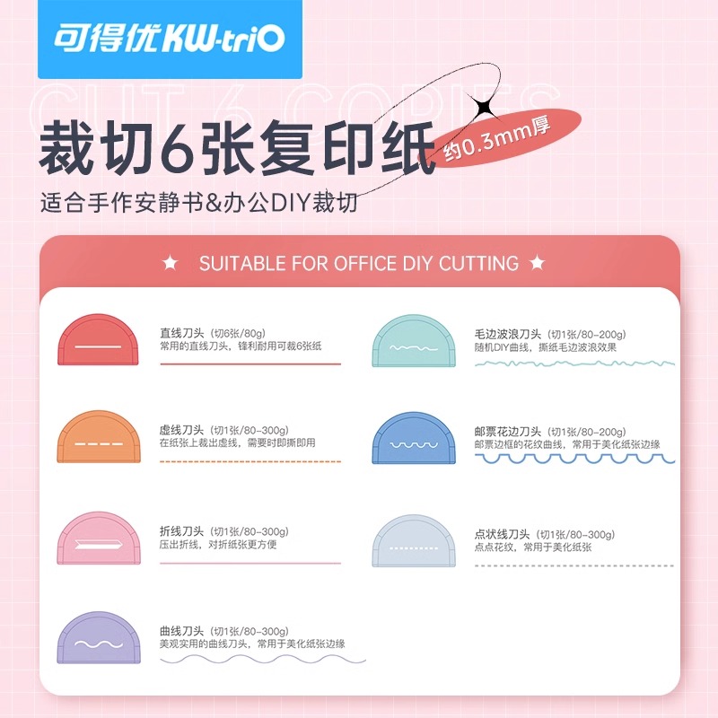 可得优多功能裁纸刀七合一裁刀文件切纸直线曲线任意彩虹刀裁布切皮料组合切刀手帐工具装饰线切邮票手工折纸