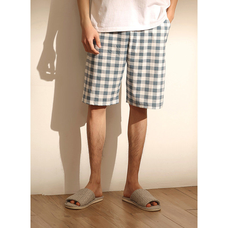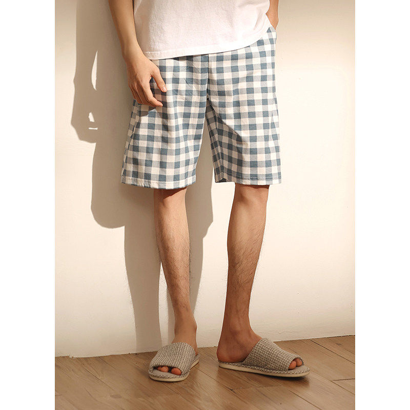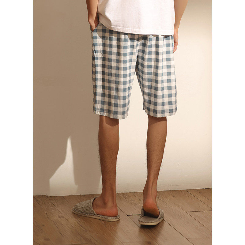 红豆纯棉男短睡裤居家格子短裤全棉家居裤大裤衩居家服夏季薄款睡