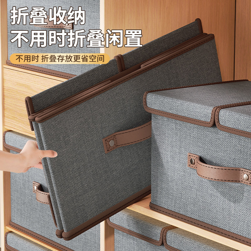 分格衣服收纳箱布艺衣柜储物盒衣物整理箱棉麻箱子袜子带盖折叠