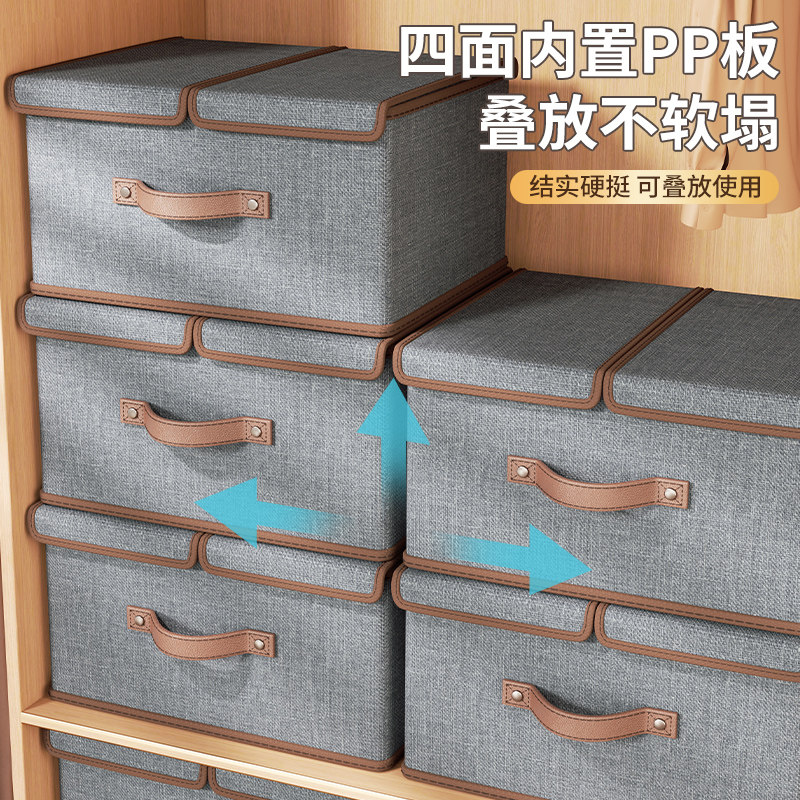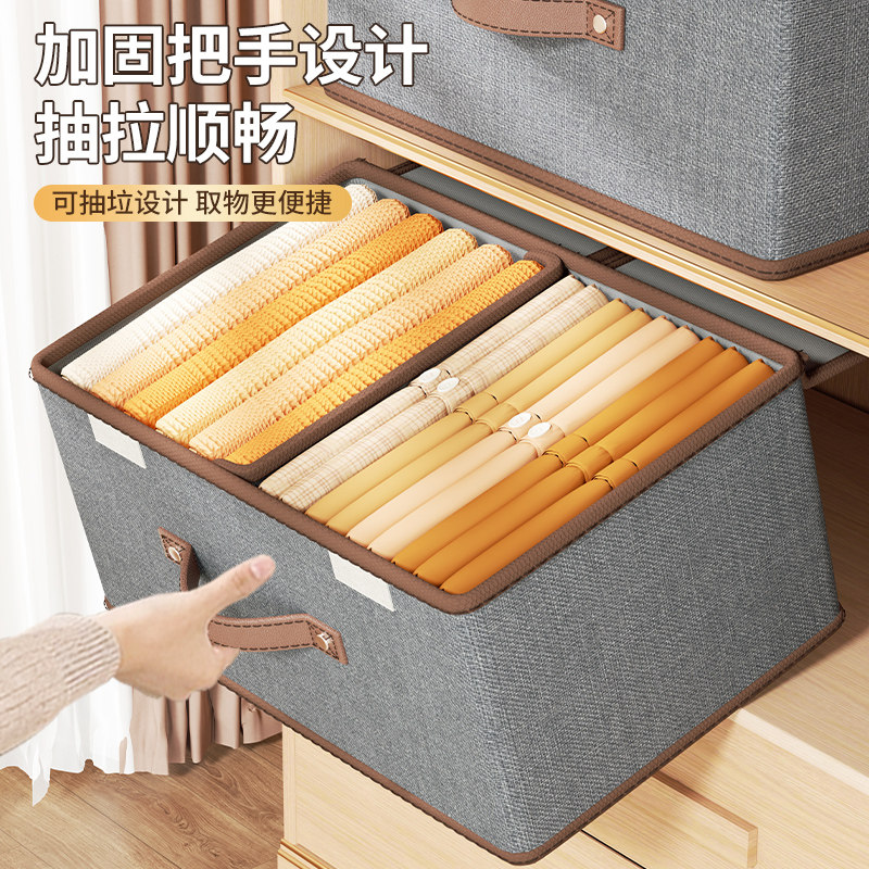 天山棉麻收纳筐衣柜收纳整理分层神器PP板可水洗衣服储物盒收纳箱