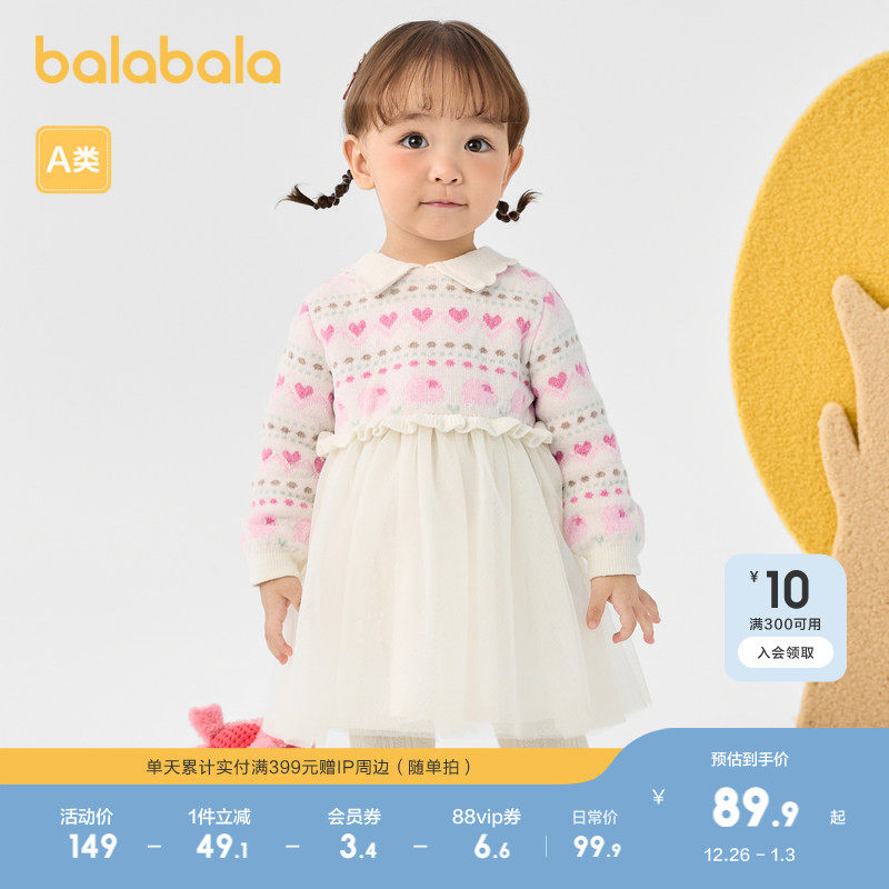 巴拉巴拉儿童裙子秋冬连衣裙女童公主裙纱裙假两件设计甜美精致萌
