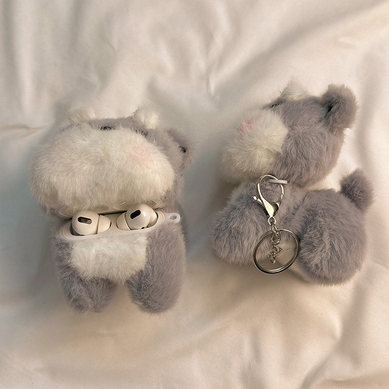 日韩可爱灰白小狗适用AirPods4保护套秋冬新款iPod苹果耳机壳毛绒1/2代无线蓝牙3代airpodspro2代防摔保护壳