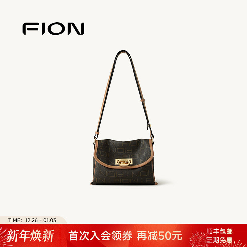 Fion/菲安妮女包秋冬新款老花方形包高级感小方包通勤单肩斜挎包