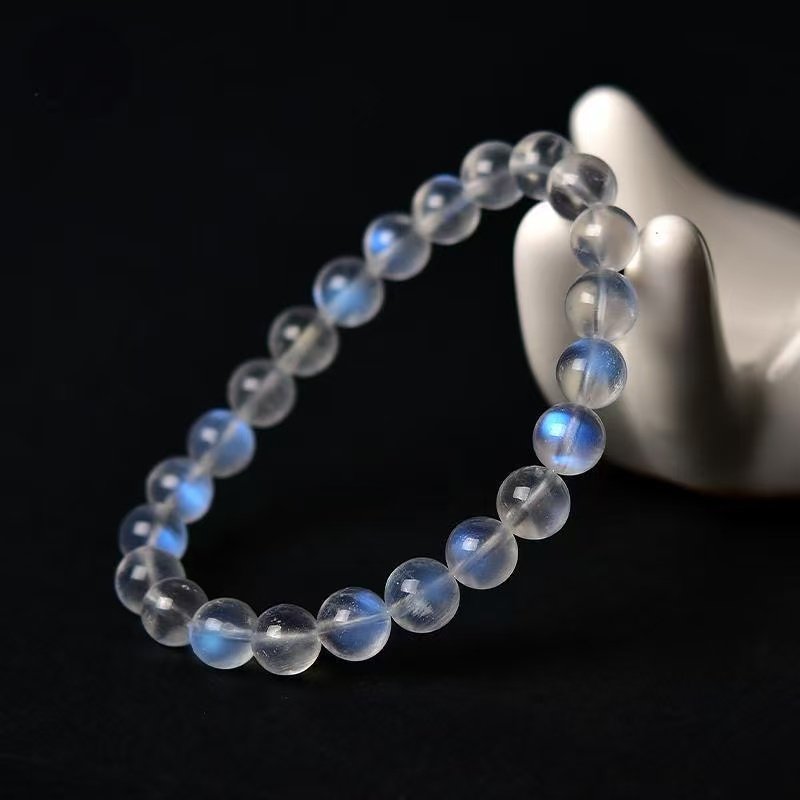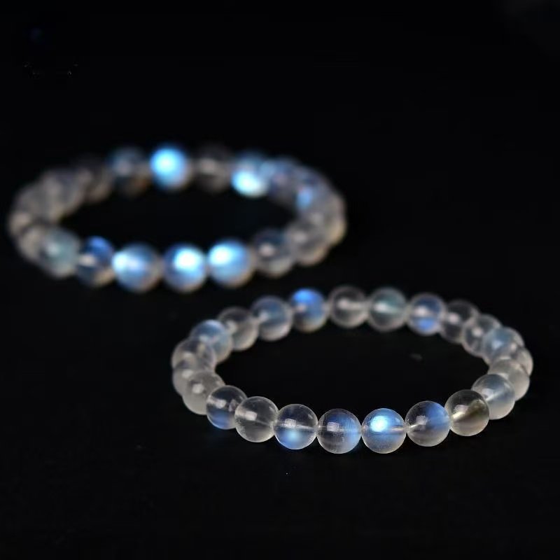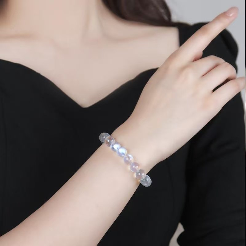 蓝月光水晶石手串串珠DIY饰品手链配件蓝月光水晶石