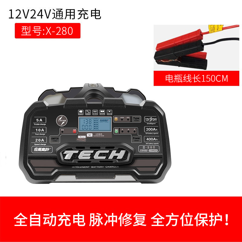 汽车电瓶充电器12v24v大功率全自动智能蓄电池充电机脉冲修复神器
