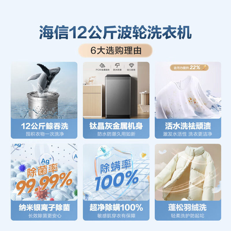 海信12公斤大容量全自动波轮洗衣机家用租房活水洗脱一体机DC36
