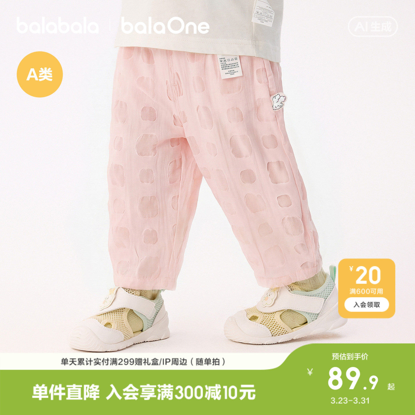 【balaOne】巴拉巴拉宝宝裤子婴儿防蚊裤2026新款夏季舒适透气萌