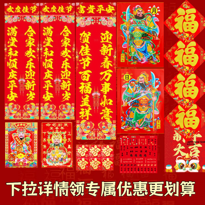 春节对联大礼包2026马年新款植绒春联农村大门高档批发大尺寸烫金