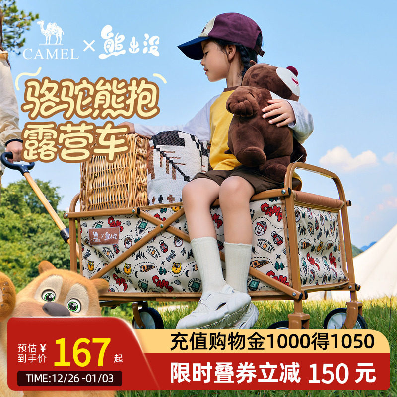 Camel熊出没联名户外可折叠露营车儿童可躺野餐手推车摆摊营地车