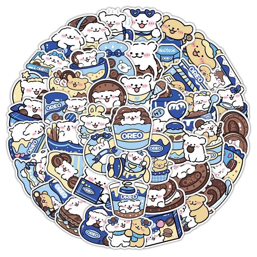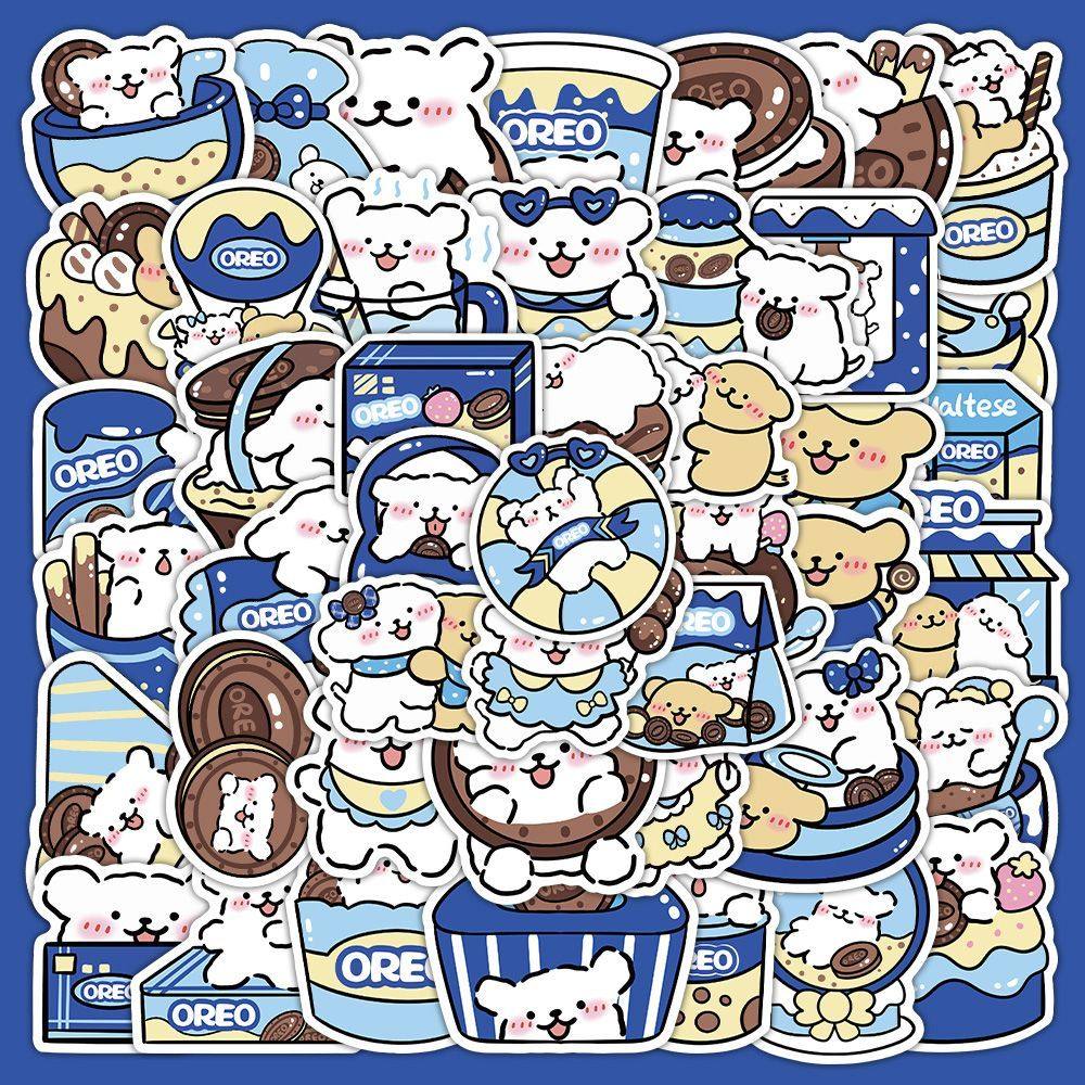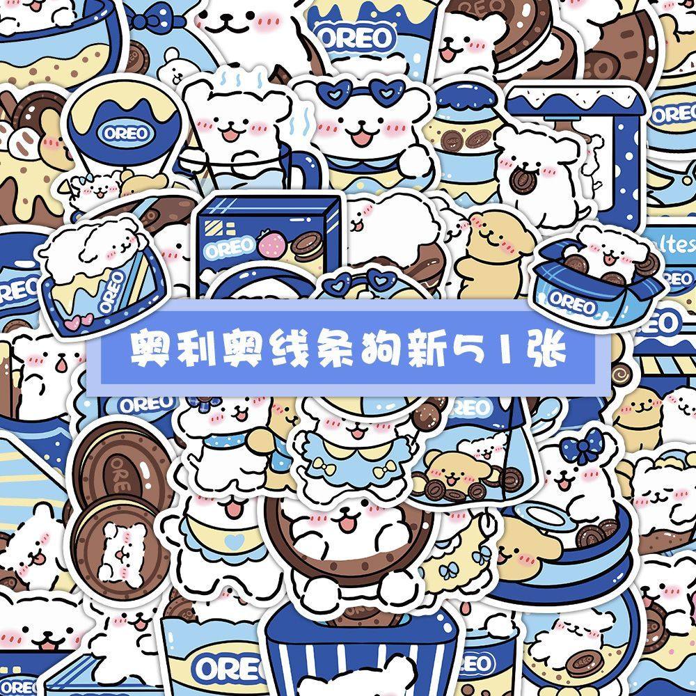 153张ins风卡通Q版绘画贴纸可爱线条小狗手账水杯吉他小型贴画