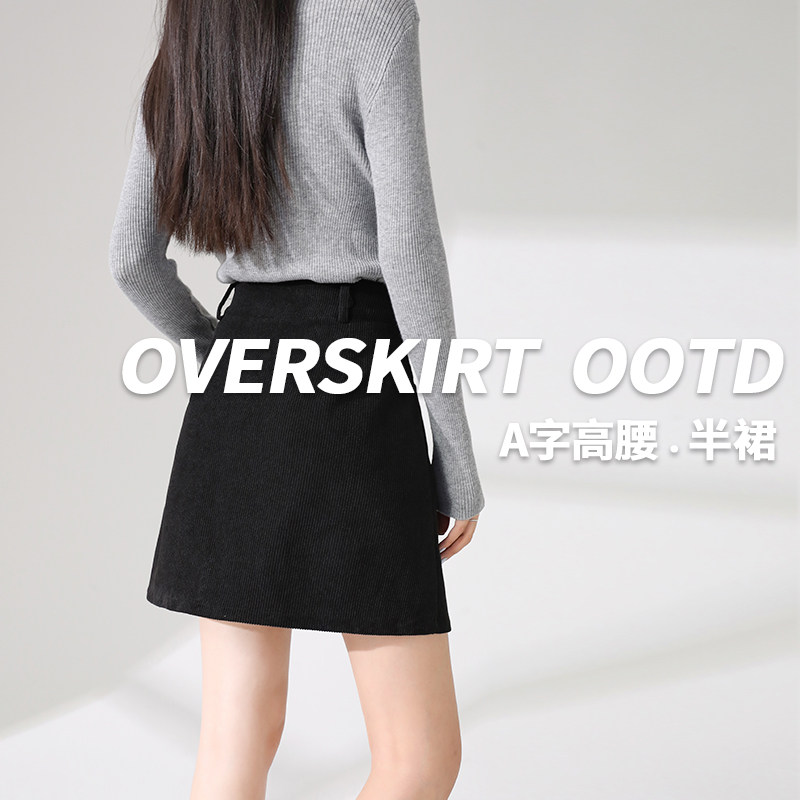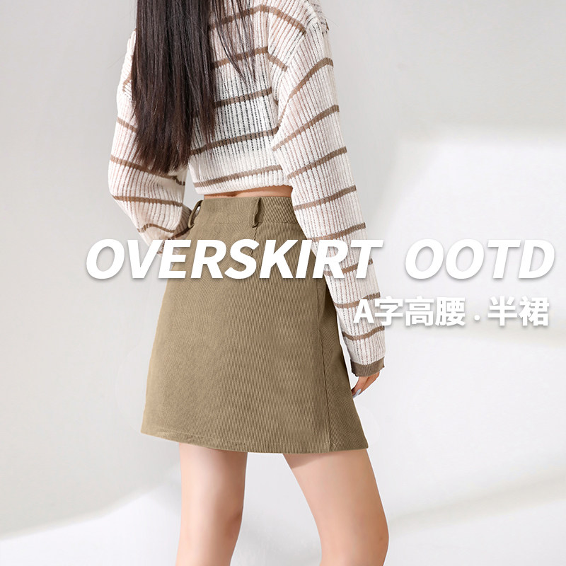 KWV真维斯灯芯绒半身裙女2026新款秋小个子复古短裙a字半裙包臀裙
