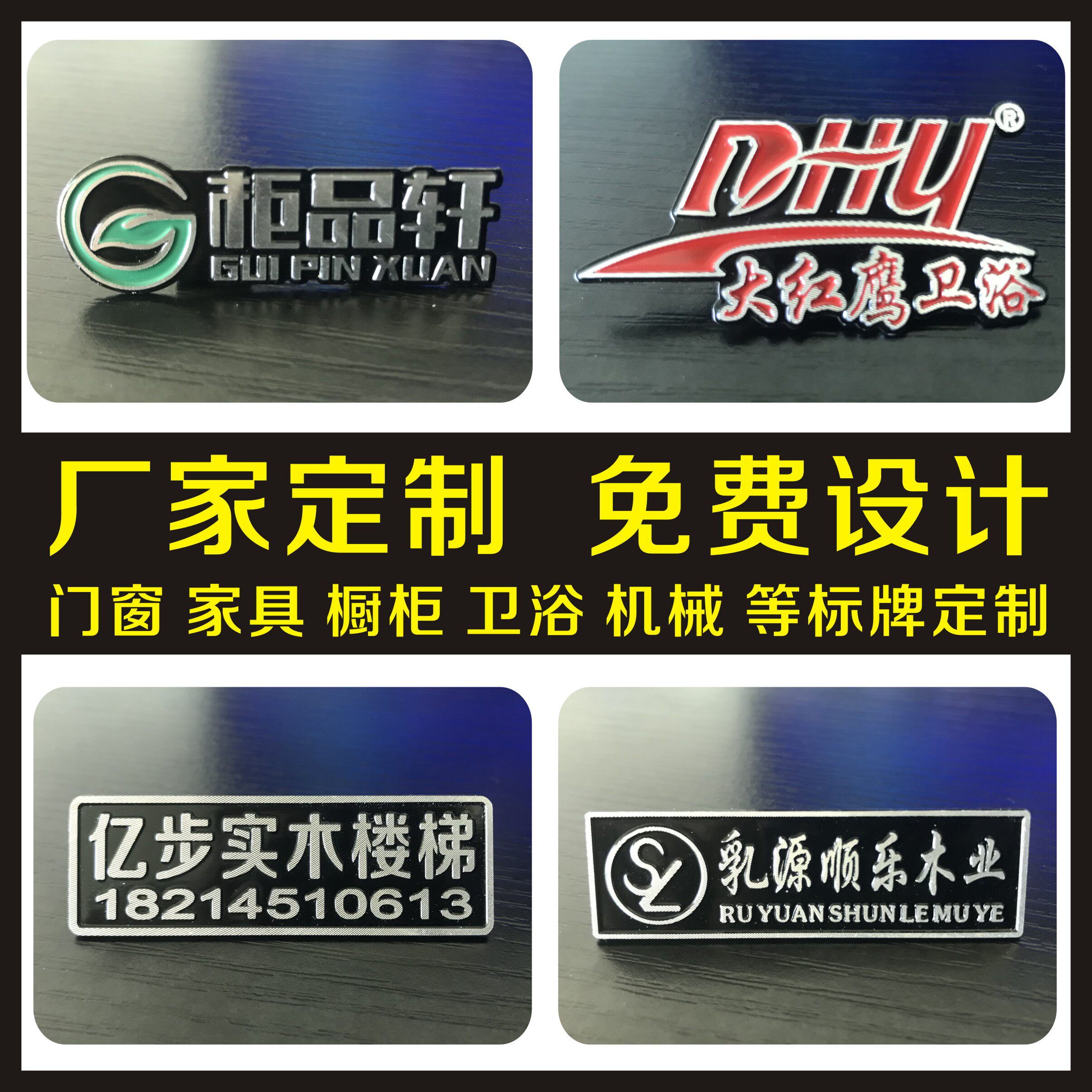 铝标牌定制铁铜锌高光家具卫浴橱柜门业纱窗公司logo金属分体铭牌