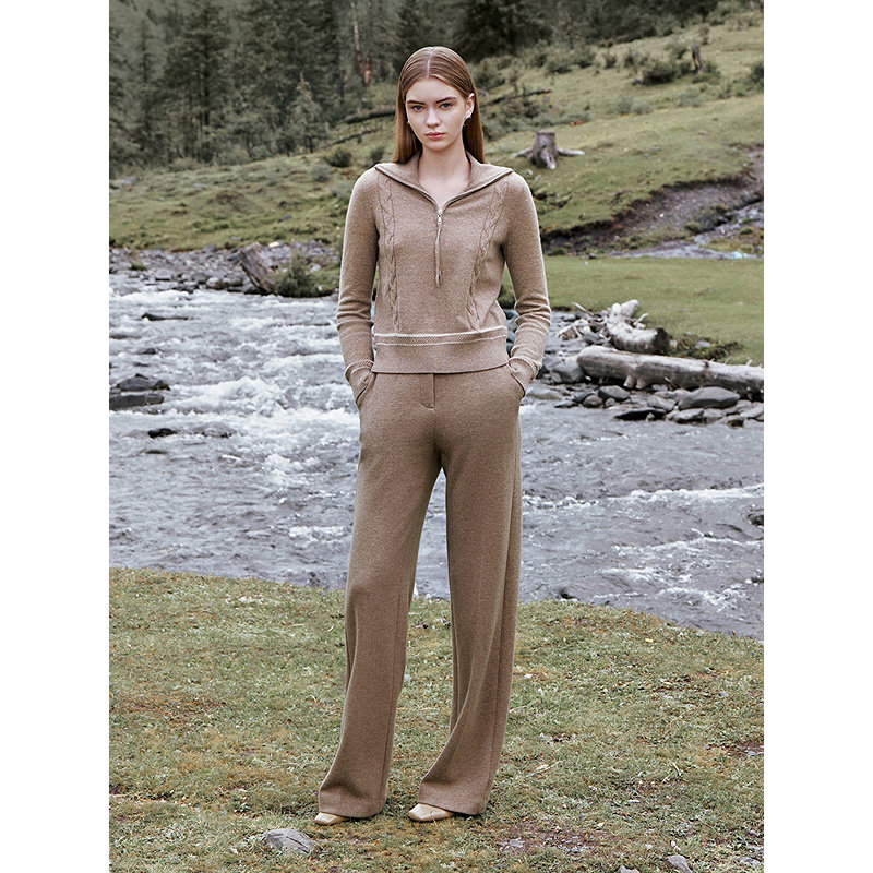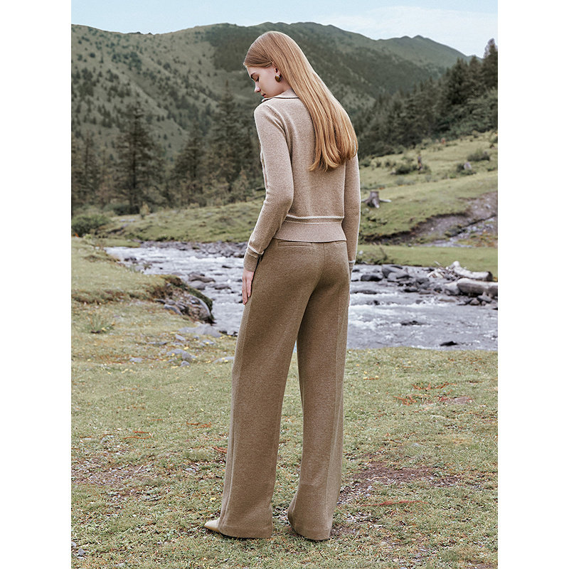 【刘涛同款】YINER音儿2025冬季新款法式羊毛羊绒混纺直筒休闲裤