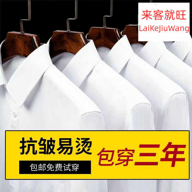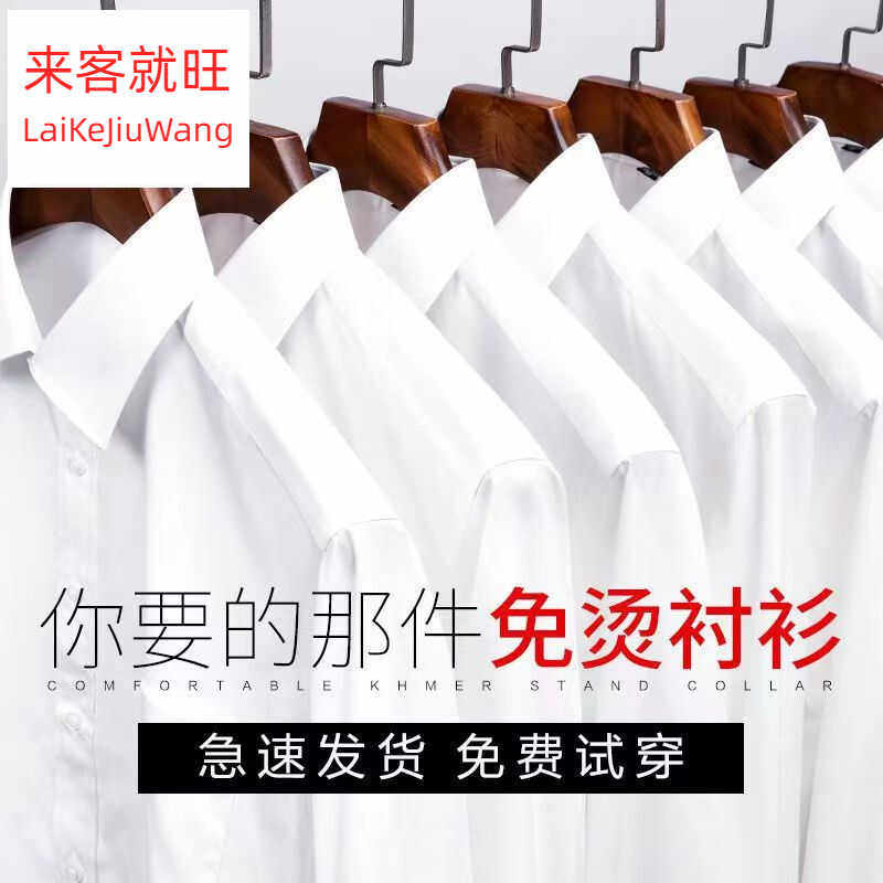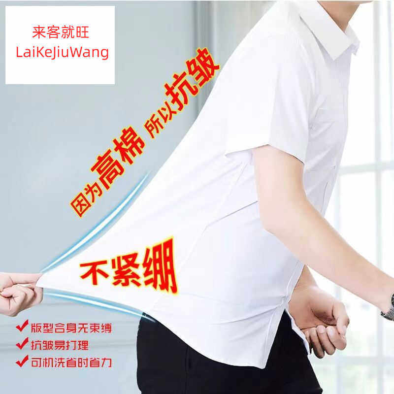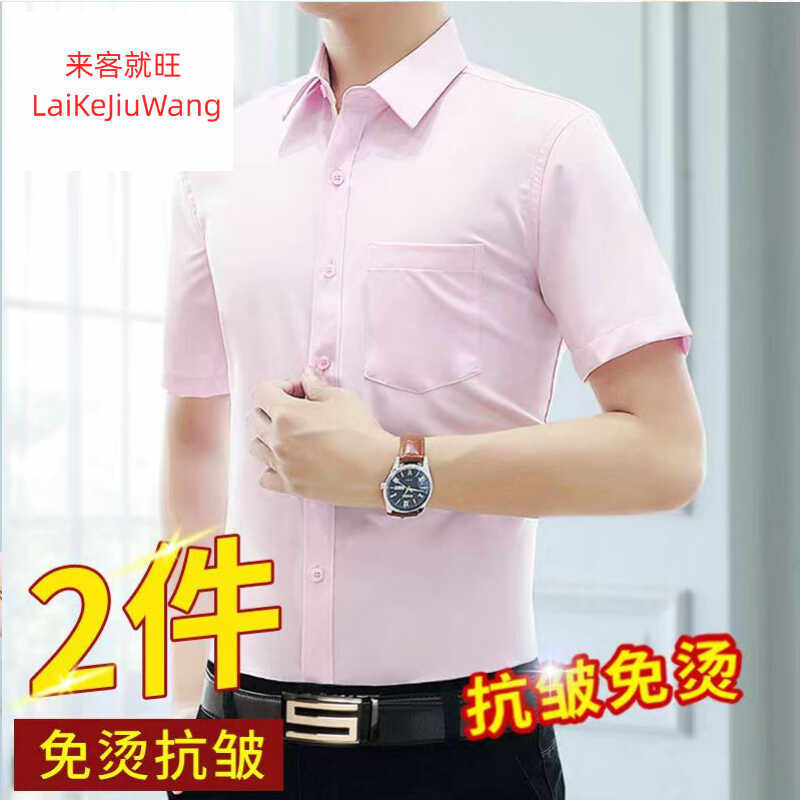 夏季纯棉100%白色短袖衬衫男士职业衬衣修身半袖抗皱粉色蓝色黑色