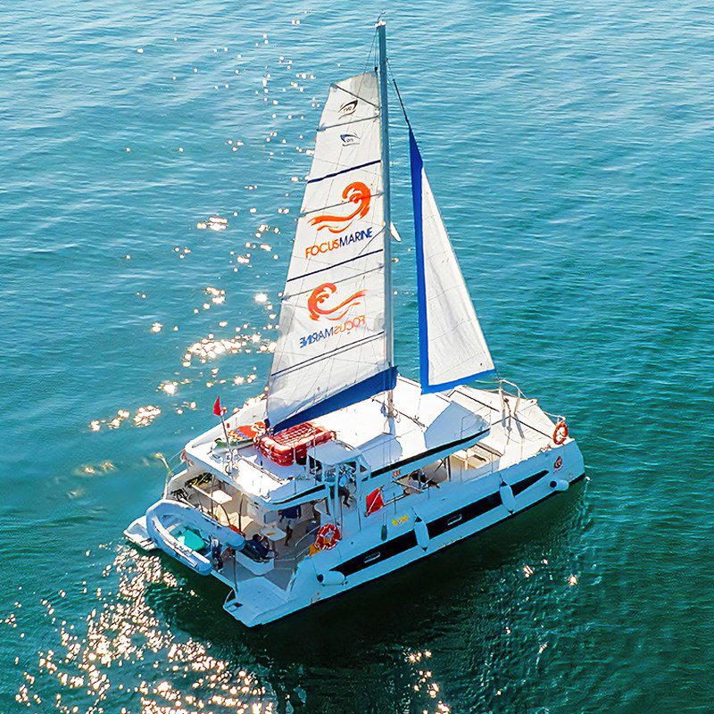 富国岛豪华双体帆船包船拼团游艇出海一日游浮潜海钓海鲜BBQ午餐