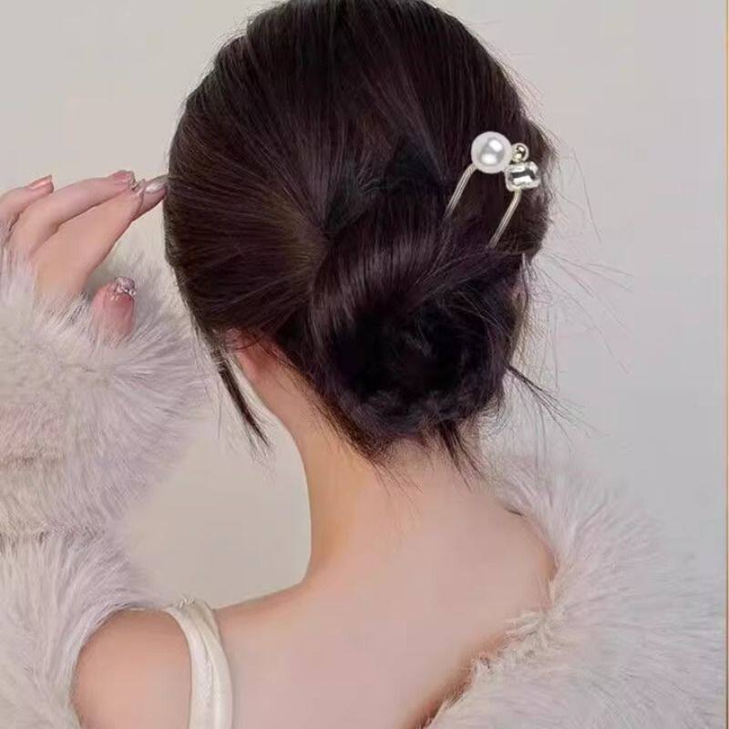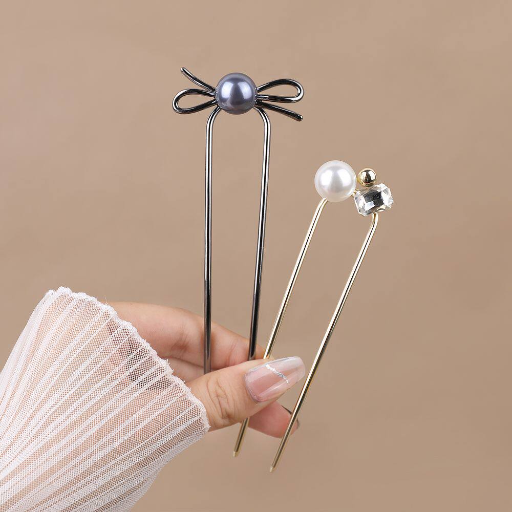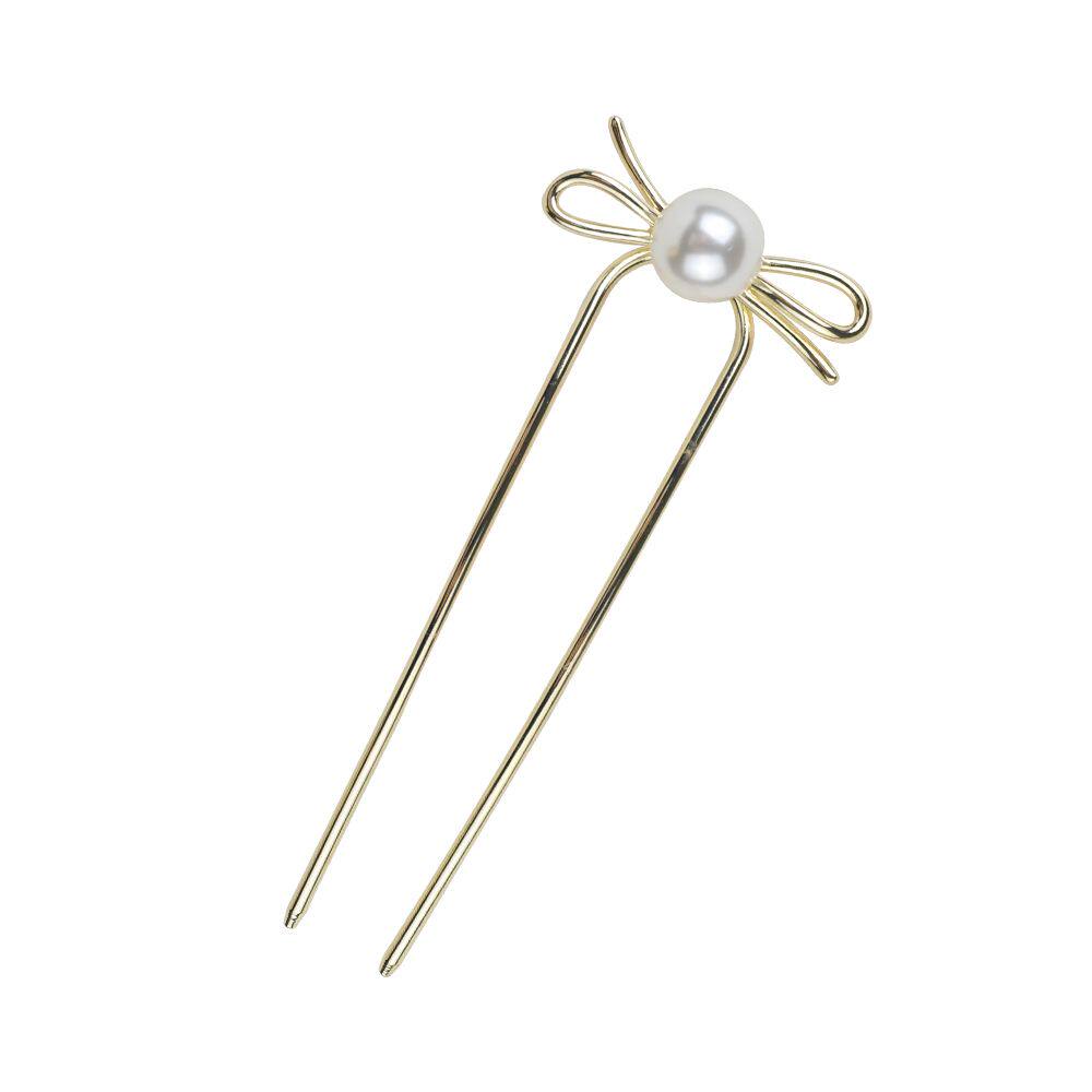 气质仿珍珠简约U型发簪蝴蝶结古风百搭盘发簪子网红珠珠发饰头饰