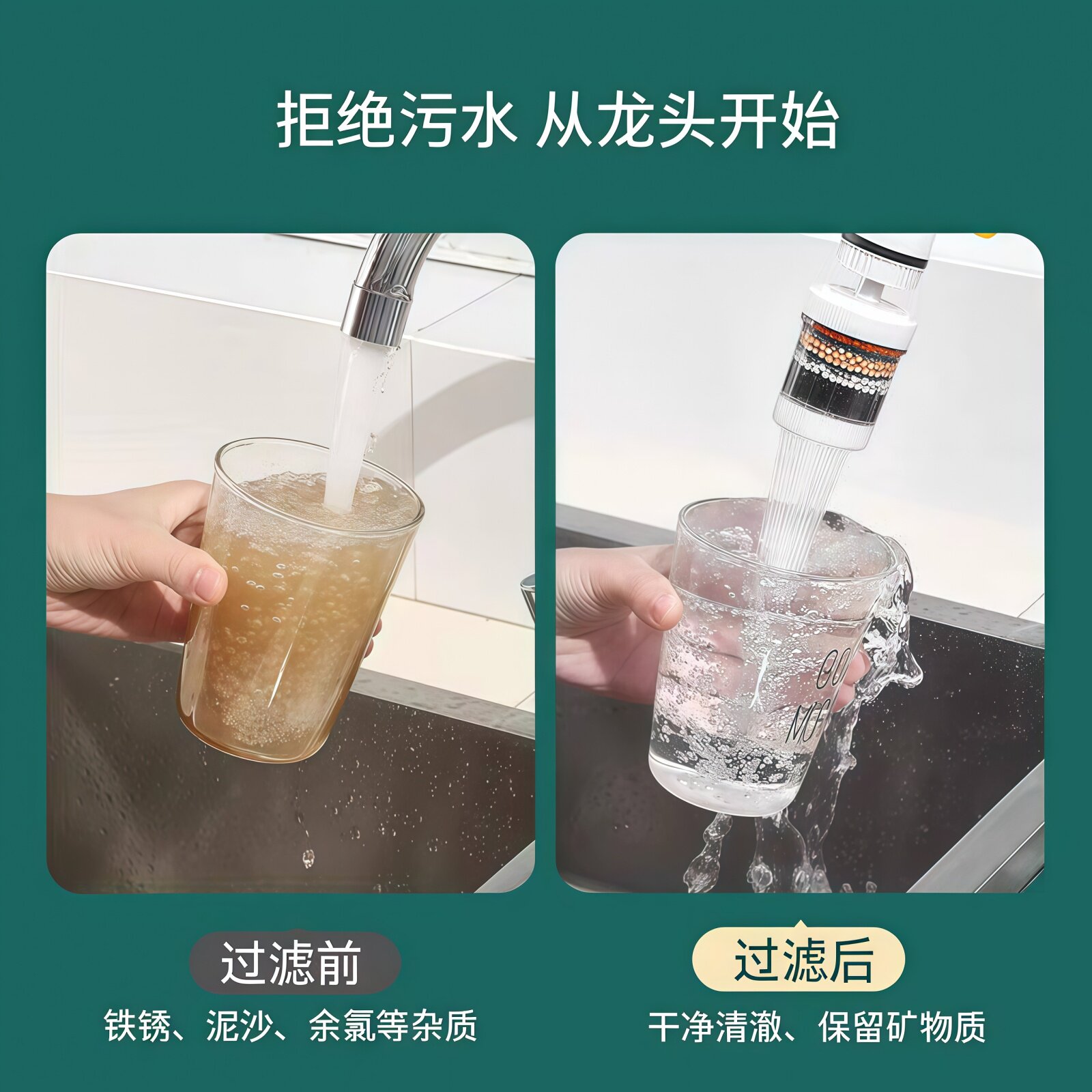 厨房水龙头过滤器防溅自来水嘴净化宿舍通用延伸净水器家用过滤芯