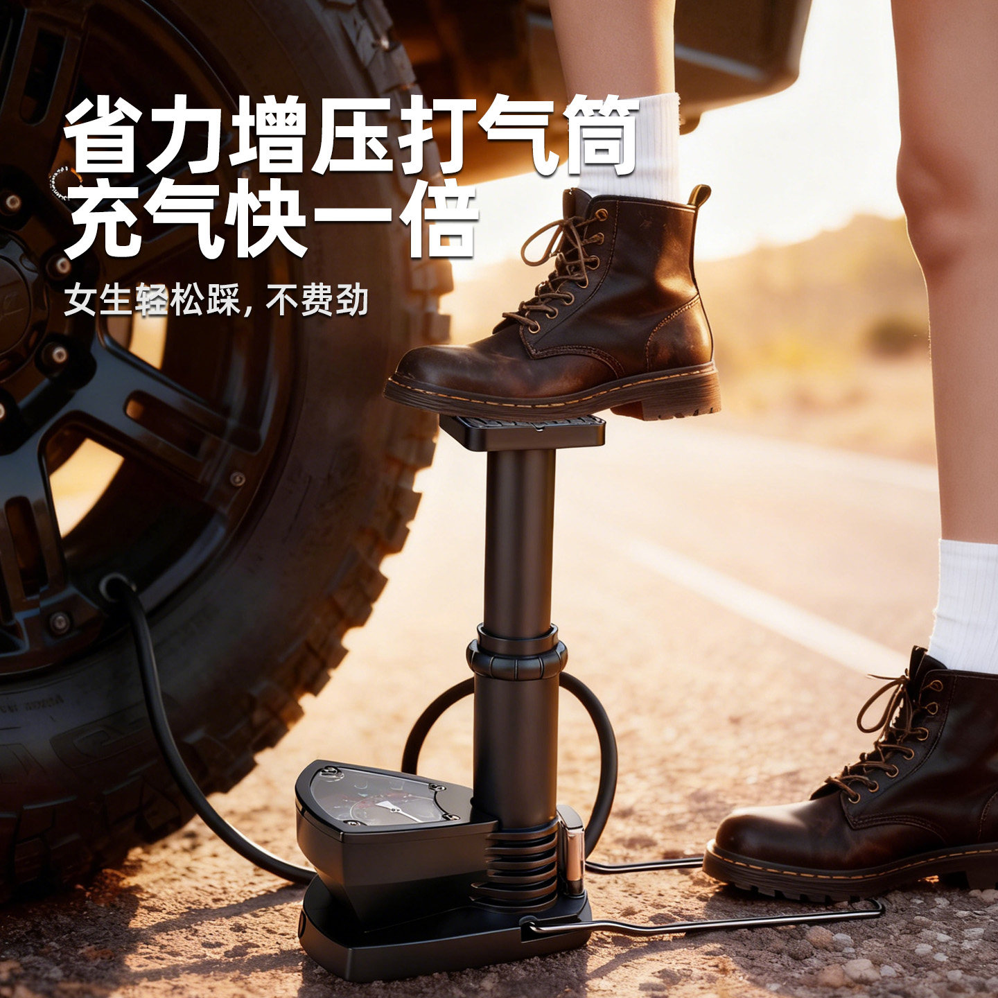 脚踩打气筒自行车家用通用高压充气泵电动电瓶摩托车气管篮球便携
