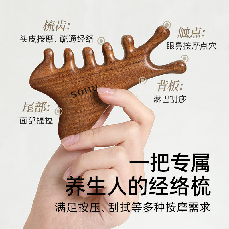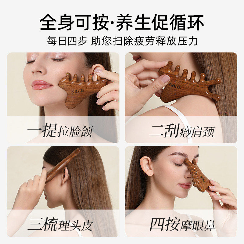 多功能四合一檀木梳头部疗刮痧疏通经络神器脸部眼部头皮按摩梳子