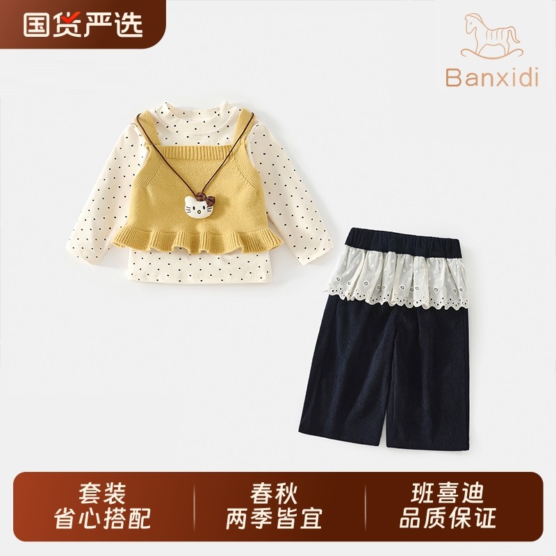 班喜迪女童秋装套装2025新款宝宝洋气时髦童装秋季儿童衣服三件套