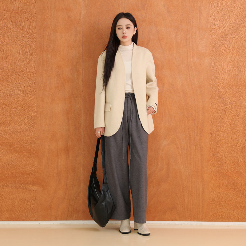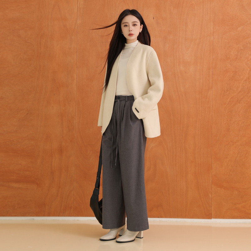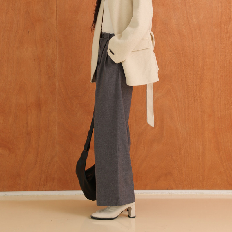 黑标BAIZHUO冬季新款高级感通勤高腰显瘦直筒阔腿休闲裤AZ44CK442