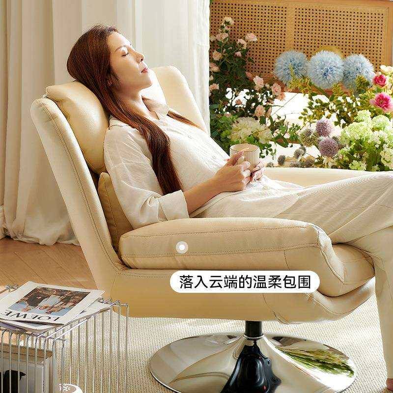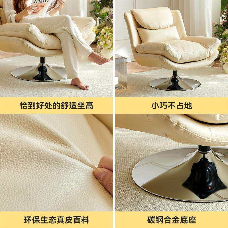 桐语特 法式奶油风懒人沙发旋转多功能设计师皮艺单人休闲沙发椅