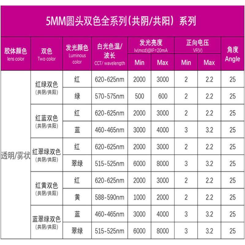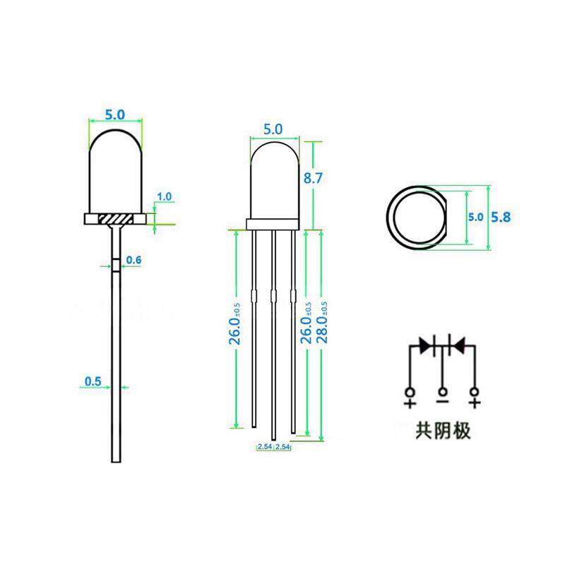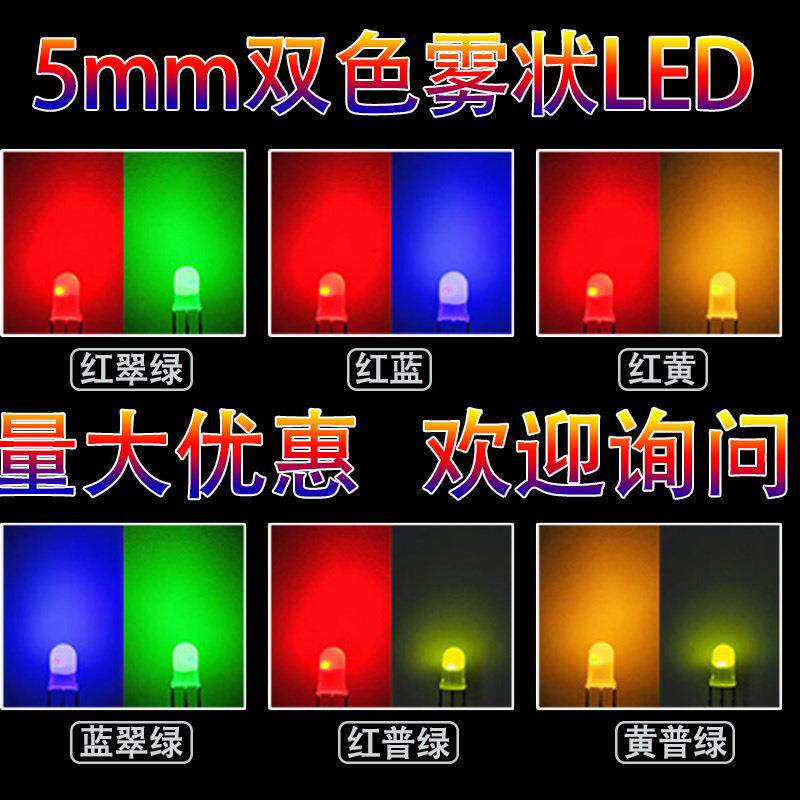 5mm红绿雾状双色三脚LED灯珠F5红蓝红翠绿红黄发光二极管共阳共阴