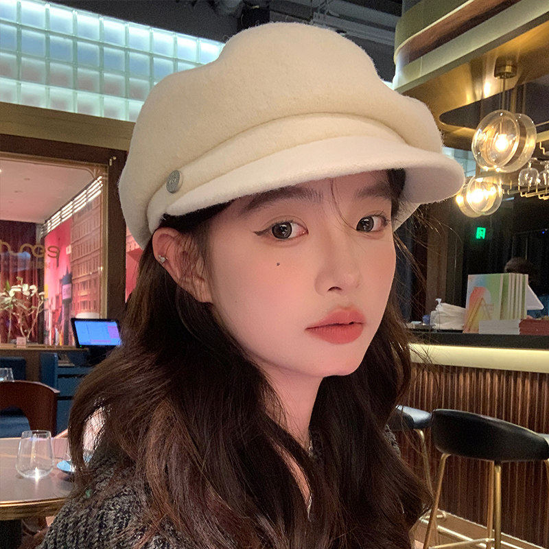 沈月同款白色毛呢八角帽韩系百搭简约画家帽贝雷帽大头围显脸小