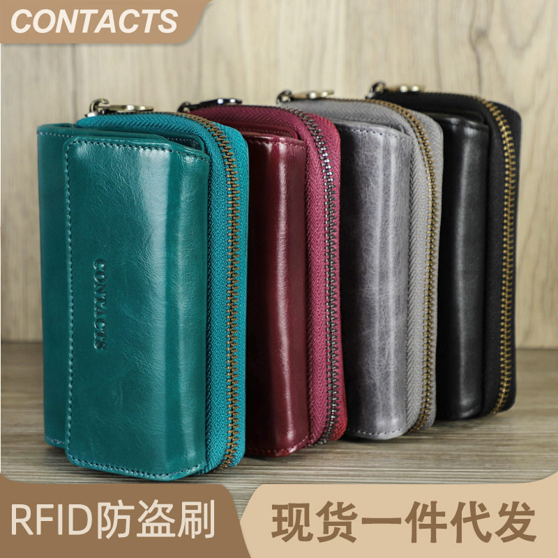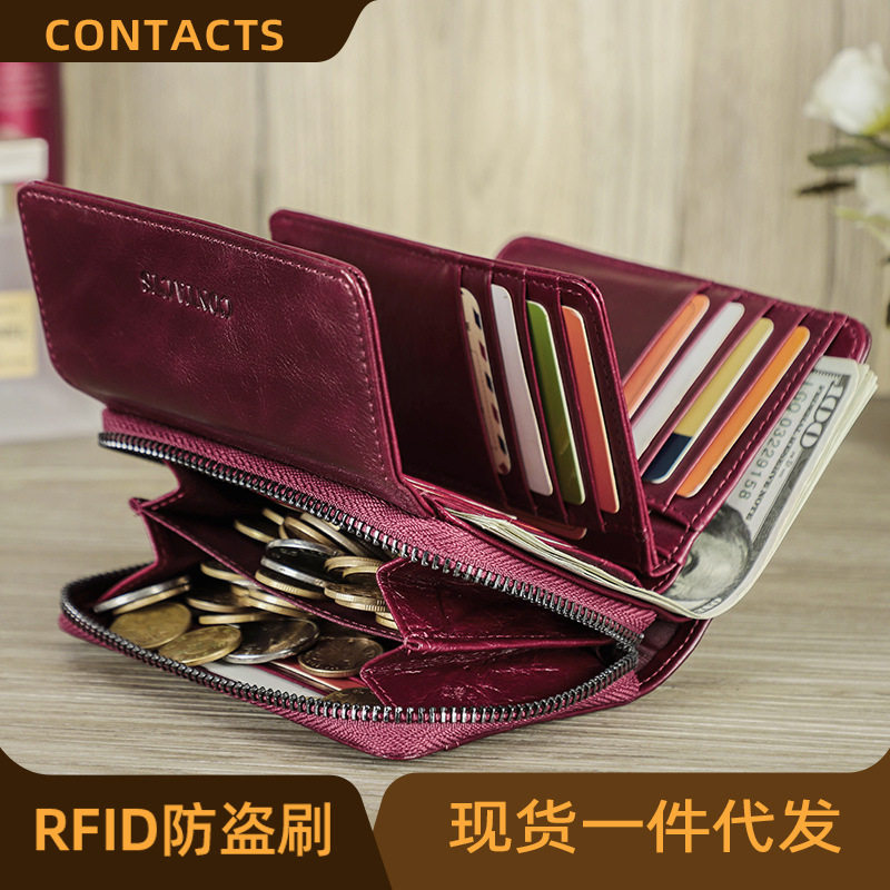 黑天使RFID防盗刷牛皮女士钱包 真皮潮流拉链女款零钱包百搭