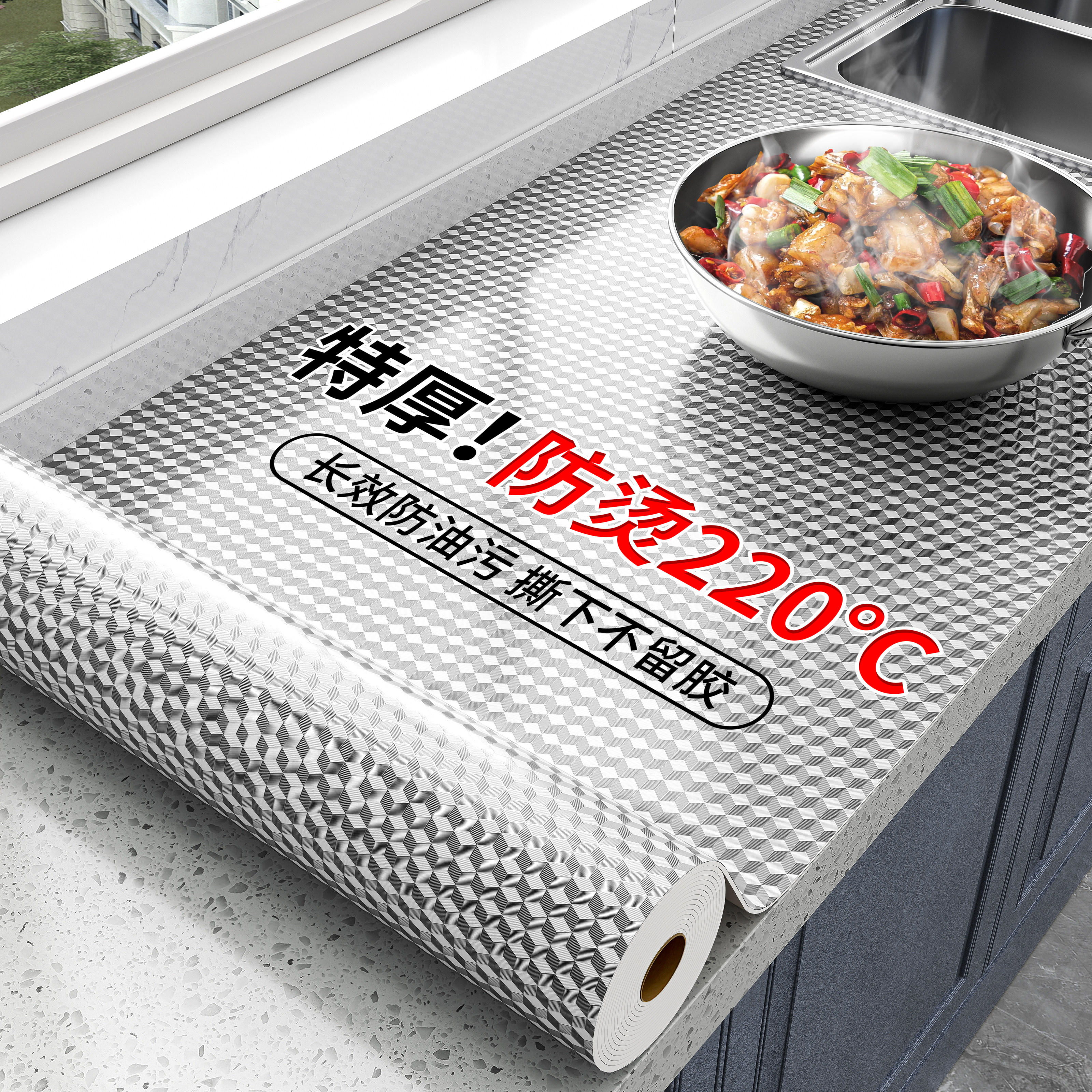 厨房防油贴纸防火耐高温灶台面自粘防水防潮橱柜贴特厚铝箔锡箔纸